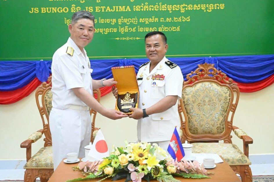 យោងតាមប្រភពស្ថានទូតជប៉ុនប្រចាំកម្ពុជា នៅរសៀលថ្ងៃទី១៩ ខែមេសា ឆ្នាំ២០២៥ បានឱ្យដឹងថា ឯកឧត្តម ឯកអគ្គរាជទូតជប៉ុន អ៊ូអិណុ អាត់ស៊ូស៊ី និងលោកវរនាវីឯក មាន សាវឿន មេបញ្ជាការរងមូលដ្ឋានសមុទ្ររាម និងនាយនាវីជាច្រើនរូបបានចូលរួមពិធីស្វាគមន៍នាវាចំនួនពីរគ្រឿង នៃកងកម្លាំងស្វ័យការពារជើងទឹកជប៉ុន គឺនាវា “Bungo” និងនាវា Etazima” ខណៈពេលចូលចតនៅមូលដ្ឋានសមុទ្ររាម។
