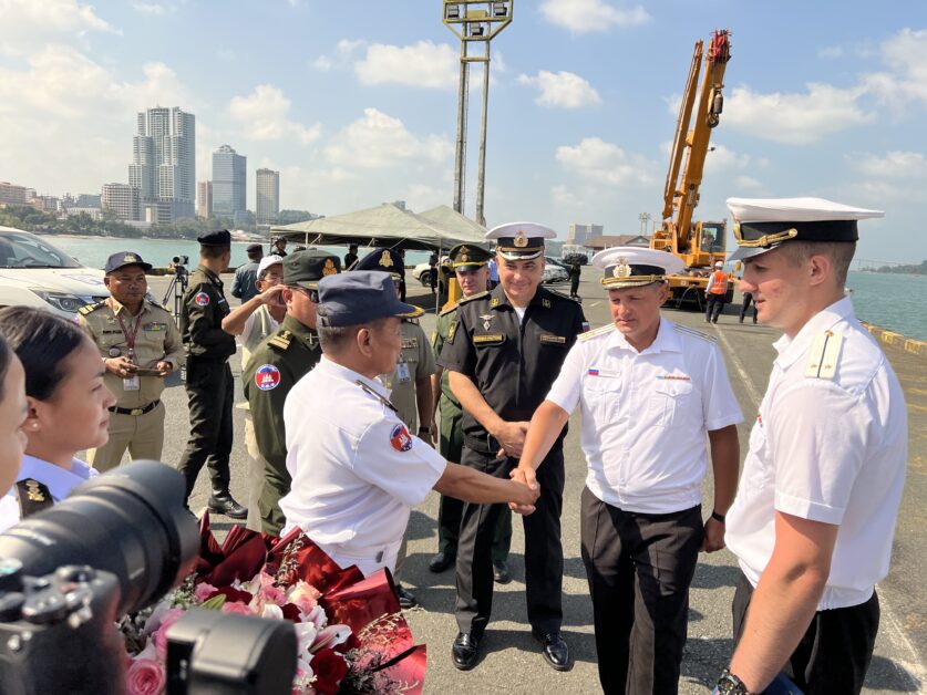 សូមជម្រាបជូនថា ចាប់តាំងពីឆ្នាំ២០១១ រហូតមកដល់ពេលនេះ កម្ពុជាបានស្វាគមន៍នាវាចម្បាំងកងទ័ពជើងទឹករបស់រុស្ស៊ី ដែលបានចូលចតនៅកំពង់ផែរបស់កម្ពុជា ចំនួន ៨លើក ស្មើនឹង១៨គ្រឿង។ នាវាចម្បាំងរុស្ស៊ីធ្លាប់បានមកទស្សនកិច្ចកម្ពុជាលើកចុងក្រោយកាលពីថ្ងៃទី២៨ ខែមេសា ដល់ថ្ងៃទី១ ខែឧសភា ឆ្នាំ២០២៥។ កងនាវាចម្បាំងរុស្ស៊ីនោះ មានដូចជា នាវាចម្បាំង “វីរបុរសនៃសហព័ន្ធរុស្ស៊ី Aldar Tsydenzhapov” និង “Rezky” ក៏ដូចជានាវាដឹកប្រេងសមុទ្រមធ្យម “Pechenga” ក៏បានមកទស្សនកិច្ចនៅកំពង់ផែស្វយ័តក្រុងព្រះសីហនុផងដែរ៕