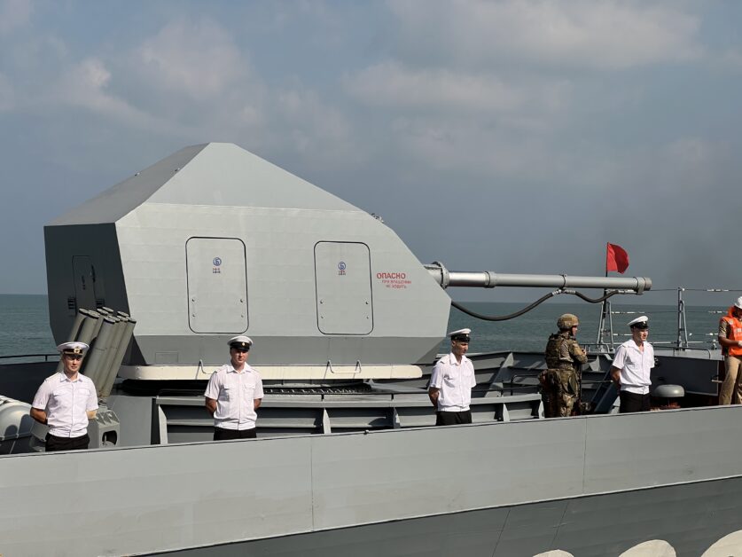 កងនាវានៃកងទ័ពជើងទឹករុស្ស៊ីទាំងពីរគ្រឿងនេះ ដឹកនាំដោយលោកវរនាវីឯក GAEVOY Andrei ជានាយបញ្ជាការបេសកកម្មនាវាកងទ័ពជើងទឹករុស្ស៊ី និងមាននាវិកនៃនាវាចម្បាំង របស់រុស្ស៊ីទាំងពីរគ្រឿងនេះសរុបប្រមាណជាង២០០នាក់ ដោយមានការអញ្ជើញទទួលស្វាគមន៍ពីសំណាក់ ឯកឧត្តមឧត្តមនារីត្រី អ៉ិន សុខេមរា មេបញ្ជាការរងមូលដ្ឋានសមុទ្ររាម និងកងទ័ពជើងទឹកកម្ពុជាជាច្រើនរូប។