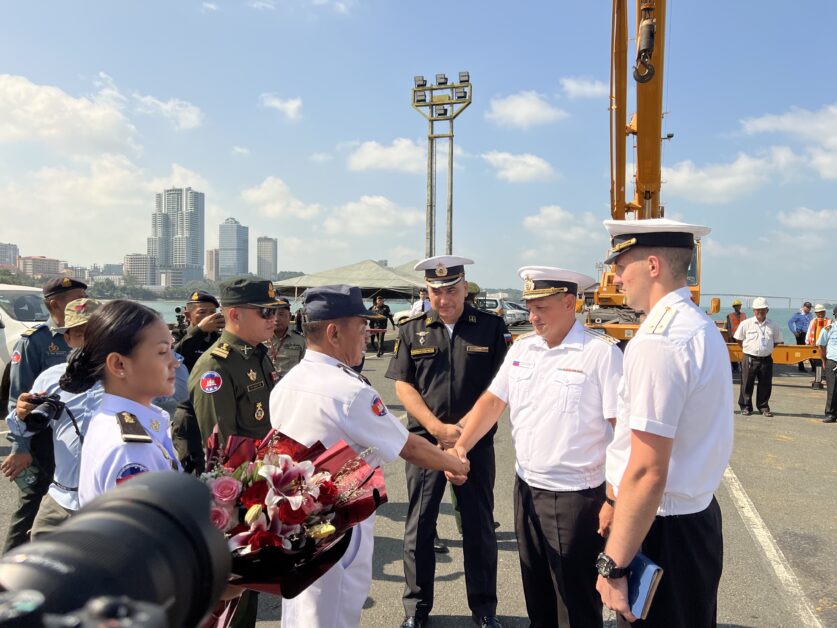 សូមជម្រាបជូនថា ចាប់តាំងពីឆ្នាំ២០១១ រហូតមកដល់ពេលនេះ កម្ពុជាបានស្វាគមន៍នាវាចម្បាំងកងទ័ពជើងទឹករបស់រុស្ស៊ី ដែលបានចូលចតនៅកំពង់ផែរបស់កម្ពុជា ចំនួន ៨លើក ស្មើនឹង១៨គ្រឿង។ នាវាចម្បាំងរុស្ស៊ីធ្លាប់បានមកទស្សនកិច្ចកម្ពុជាលើកចុងក្រោយកាលពីថ្ងៃទី២៨ ខែមេសា ដល់ថ្ងៃទី១ ខែឧសភា ឆ្នាំ២០២៥។ កងនាវាចម្បាំងរុស្ស៊ីនោះ មានដូចជា នាវាចម្បាំង “វីរបុរសនៃសហព័ន្ធរុស្ស៊ី Aldar Tsydenzhapov” និង “Rezky” ក៏ដូចជានាវាដឹកប្រេងសមុទ្រមធ្យម “Pechenga” ក៏បានមកទស្សនកិច្ចនៅកំពង់ផែស្វយ័តក្រុងព្រះសីហនុផងដែរ៕