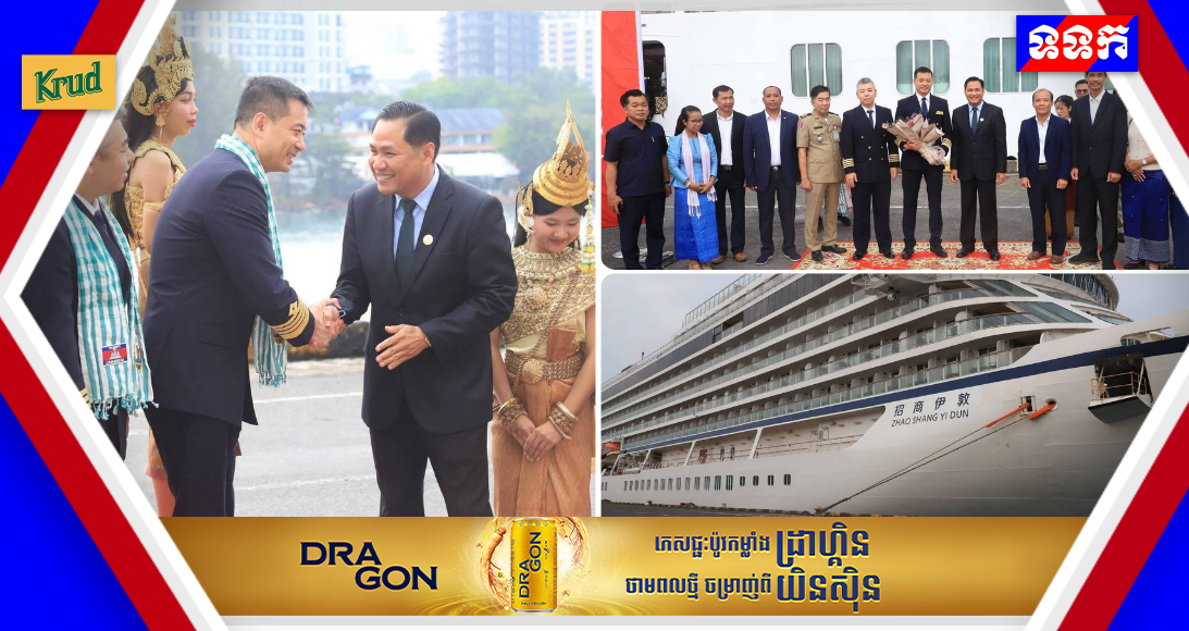 ខេត្តព្រះសីហនុ៖ នៅវេលាព្រឹកថ្ងៃអាទិត្យ ទី១៨ ខែមករា ឆ្នាំ២០២៦ នាវាទេសចរណ៍មួយគ្រឿងឈ្មោះ Zhao Shang Yin Dun សញ្ជាតិចិន បានចូលចតនៅកំពង់ផែក្រុងព្រះសីហនុ ដោយនាំមកជាមួយភ្ញៀវទេសចរចំនួន ២៦៦នាក់ ក្នុងនោះមានស្ត្រីចំនួន ១៤២នាក់ មកពី ១៨សញ្ជាតិ រួមមានជនជាតិជប៉ុនចំនួន ១៧៤នាក់ ព្រមទាំងនាវិកចំនួន ៣៣០នាក់។