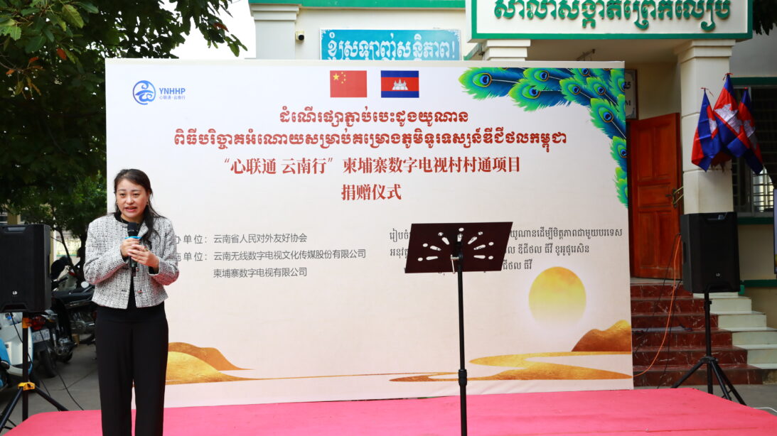 ពិធីប្រគល់-ទទួលអំណោយសម្រាប់គម្រោងទូរទស្សន៍ឌីជីថល “ភូមិមួយទៅភូមិមួយ”នៅកម្ពុជា ដែលជាគម្រោងសប្បុរសធម៌ដើម្បីសុខុមាលភាពប្រជាជនកម្ពុជា ក្រោមប្រធានបទ “ដំណើរផ្សារភ្ជាប់បេះដូងយូណាន” ត្រូវបានប្រារព្ធឡើងដោយជោគជ័យនៅសង្កាត់ព្រែកលៀប ក្រុងភ្នំពេញ ប្រទេសកម្ពុជា។ គម្រោងនេះត្រូវបានរៀបចំឡើងដោយ សមាគមមិត្តភាពអន្តរជាតិប្រជាជនខេត្តយូណាន ហើយអនុវត្តរួមគ្នាដោយក្រុមហ៊ុន យូណាន ម៉ូបែល ឌីឃីថល ធីវី ខូអូផូរេសិន និង ក្រុមហ៊ុនខេមបូឌាឌីជីថល ធីវី ។ ក្នុងពិធីនេះ ភាគីរៀបចំបានបរិច្ចាគ ប្រអប់តភ្ជាប់ទូរទស្សន៍ឌីជីថល OTT (OTT Digital TV Set-top Boxes) ចំនួន៥៦០ ឈុត ដោយឥតគិតថ្លៃ ជូនដល់ប្រជាពលរដ្ឋក្នុងតំបន់សង្កាត់ព្រែកសៀប ក្រុងភ្នំពេញ ក្នុងគោលបំណងប្រើប្រាស់បច្ចេកវិទ្យាទូរទស្សន៍ឌីជីថលនេះ ដើម្បីជំរុញការផ្លាស់ប្តូរវប្បធម៌រវាងប្រទេសចិន និងកម្ពុជា ព្រមទាំងពង្រឹងចំណងមិត្តភាពរវាងប្រទេសទាំងពីរឱ្យកាន់តែស៊ីជម្រៅ។