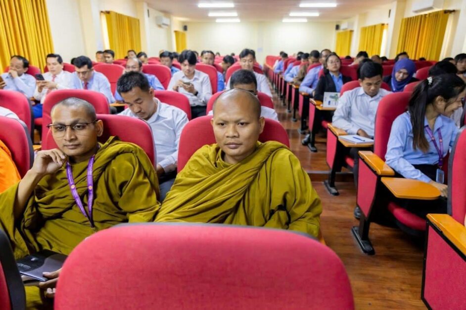 បណ្ឌិត ម៉ម ចាន់សៀន នាយកសាលាក្រោយបរិញ្ញាបត្រនៃវិទ្យាស្ថានជាតិអប់រំ ធ្វើបទបង្ហាញពី «សុក្រឹត្យបច្ចេកទេសបង្រៀនកម្រិតឧត្តមសិក្សា» ដល់មន្រ្តីរាជការ សាស្រ្តាចារ្យ នៃពុទ្ធិកសាកលវិទ្យាល័យព្រះសីហមុនីរាជា