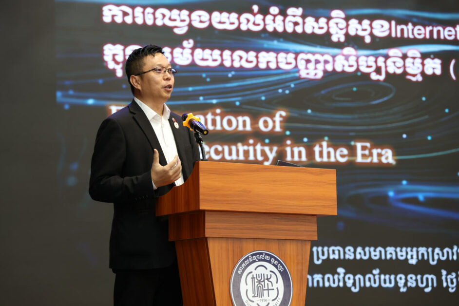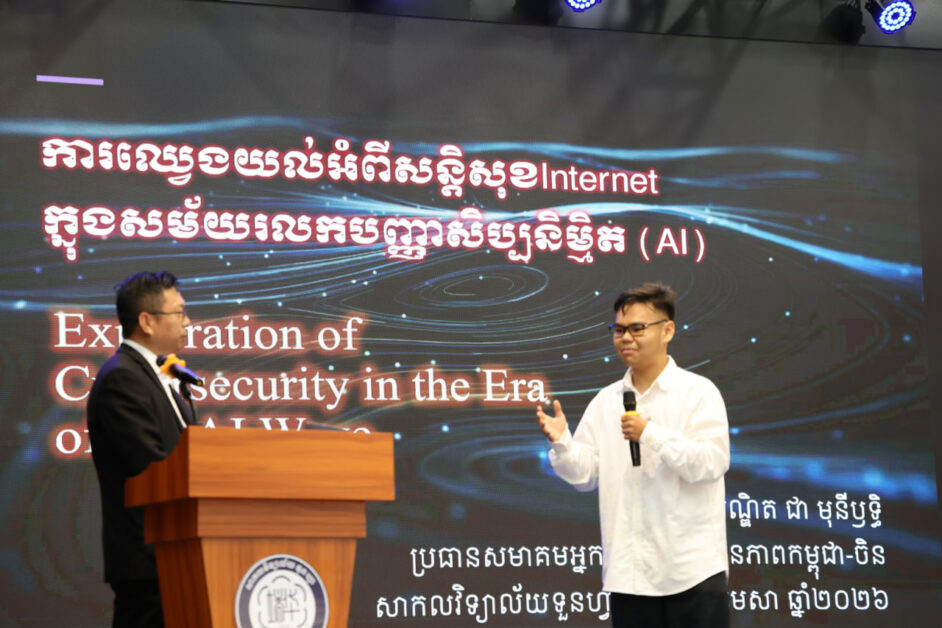 • លោកបណ្ឌិត ជា មុនីឫទ្ធិ, សមាជិកគណៈប្រតិបត្តិសមាគមមិត្តភាពកម្ពុជា-ចិន បានលើកឡើងពីសារៈសំខាន់នៃសន្តិសុខ Cyber និងការប្រើប្រាស់ AI ប្រកបដោយសុវត្ថិភាព។ បន្ថែមពីនេះ លោកបានចែករំលែកពីការសម្របសម្រួលសហការជាមួយបណ្តាគ្រឹះស្ថានអប់រំ និងសង្គមស៊ីវិលចិន ដើម្បីនាំយកបណ្ណបណ្ណាល័យអេឡិចត្រូនិកថ្មីៗសម្រាប់ការសិក្សា និងស្រាវជ្រាវរបស់និស្សិតកម្ពុជា ដែលធ្វើឲ្យការសិក្សា និងការស្រាវជ្រាវរបស់សិស្សនិស្សិតកាន់តែលឿន និងមានប្រសិទ្ធភាពខ្ពស់។