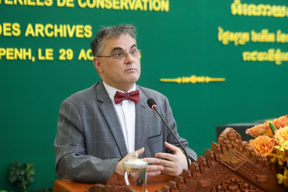 ឯកឧត្តមឧបនាយករដ្ឋមន្ត្រីប្រចាំការ បានបន្តថា ទំនាក់ទំនងកម្ពុជា-បារាំង ត្រូវបានបង្កើតឡើងជាច្រើនសតវត្សរ៍មកហើយ និងត្រូវបានផ្សារភ្ជាប់ជាប្រវត្តិសាស្រ្តរួមមួយ និងតាមរយៈការគោរពគ្នាទៅវិញទៅមក ហើយឥទ្ធិពលនៃទំនាក់ទំនងរវាងប្រទេសទាំងពីរត្រូវបានឆ្លុះបញ្ចាំងឱ្យឃើញនៅក្នុងប្រព័ន្ធរដ្ឋបាល ប្រព័ន្ធច្បាប់ ប្រព័ន្ធអប់រំ វប្បធម៌ និងក្នុងទិដ្ឋភាពជាច្រើនទៀត ដូចដែលមានបង្ហាញក្នុងបណ្ណសារជាតិកម្ពុជាដែលត្រូវបានសម្ពោធនៅឆ្នាំ១៩២៦ និងមានបណ្តុំបណ្ណសារចាប់ពីសម័យអាណានិគម ចន្លោះឆ្នាំ១៨៦៣ ដល់ឆ្នាំ១៩៥៣ និងបន្តរហូតមកដល់បច្ចុប្បន្ន។ ឯកឧត្តមបានបន្តថា ទំនាក់ទំនងកម្ពុជា-បារាំង ត្រូវបានធ្វើឱ្យកាន់តែប្រសើរឡើង ក្រោមការដឹកនាំរបស់សម្តេចអគ្គមហាសេនាបតីតេជោ ហ៊ុន សែន អតីតនាយករដ្ឋមន្ត្រី និងបច្ចុប្បន្នជាប្រធានព្រឹទ្ធសភា និងឯកឧត្តមប្រធានាធិបតី អេម៉ានុយអ៊ែល ម៉ាក្រុង និងបច្ចុប្បន្នក្រោមការដឹកនាំរបស់សម្តេចមហាបវរធិបតី ហ៊ុន ម៉ាណែត នាយករដ្ឋមន្ត្រី និងឯកឧត្តមប្រធានាធិបតី អេម៉ានុយអ៊ែល ម៉ាក្រុង ។