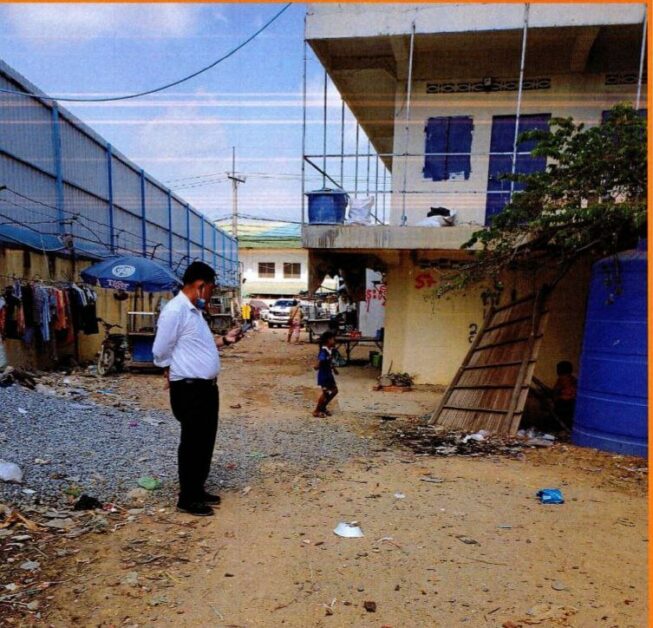 សូមបញ្ជាក់ជូនថា ផ្លូវនេះមានទីតាំងស្ថិតនៅខាងក្រោយរបងរោងចក្រ ហារតា ផាកខេង អ៊ិនដាសស្ទើ (ខេមបូឌា)លីមីតធីត ភូមិអង្គ សង្កាត់ចោមចៅទី៣ ខណ្ឌពោធិ៍សែនជ័យ រាជធានីភ្នំពេញ មានទទឹង ៨ម៉ែត្រ។ ប៉ុន្ត នៅក្នុងអំឡុងឆ្នាំ ២០២០ មានប្រជាពលរដ្ឋមួយចំនួនរស់នៅតាមដងផ្លូវ បានសាងសង់សំណង់រឹងមាំរំលោភលើ ផ្លូវអស់ប្រហែល ០៣ម៉ែត្រ ហើយក្រៅពីសំណង់រំលោភផ្លូវ ក៏មានការប្រើប្រាស់ដងផ្លូវយ៉ាងអនាធិបតេយ្យ ដោយ អ្នកខ្លះបានដាក់ធុងសម្រាម គ្រែរនាប សម្ភារៈចាស់ៗ រទេះលក់ដូរ ចតរ៉ឺម៉ក ចតយានយន្ត តាំងសម្ភារៈលក់ដូរ និងសង់រោងលក់ដូរពេញដងផ្លូវ ដែលបណ្តាលឲ្យផ្លូវបាត់បង់សណ្តាប់ធ្នាប់ អនាម័យ និងបានធ្វើឲ្យផ្លូវមាន សភាពរួមតូចចង្អៀតខ្លាំង ស្ទើរតែគ្មានចន្លោះផ្លូវសម្រាប់ធ្វើដំណើរ។