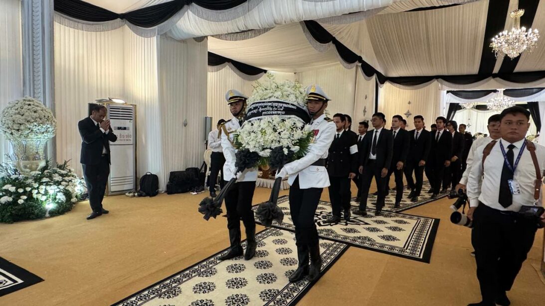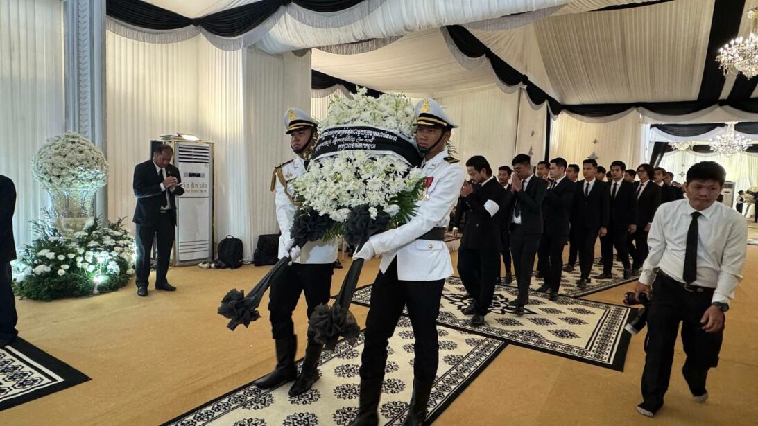 ប្រតិភូក្រុមបាល់ទាត់តារាកម្ពុជា ដឹកនាំដោយតារាចម្រៀងលោក ខេម គោរពវិញ្ញាណក្ខន្ធសព ឯកឧត្តមអ្នកឧកញ៉ា ឧត្តមមេត្រីវិសិដ្ឋ ហ៊ុន សាន