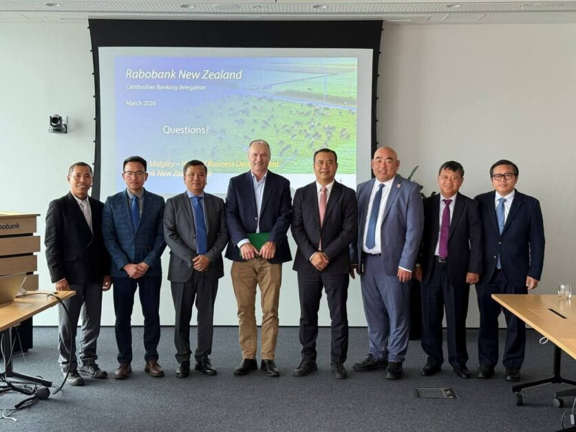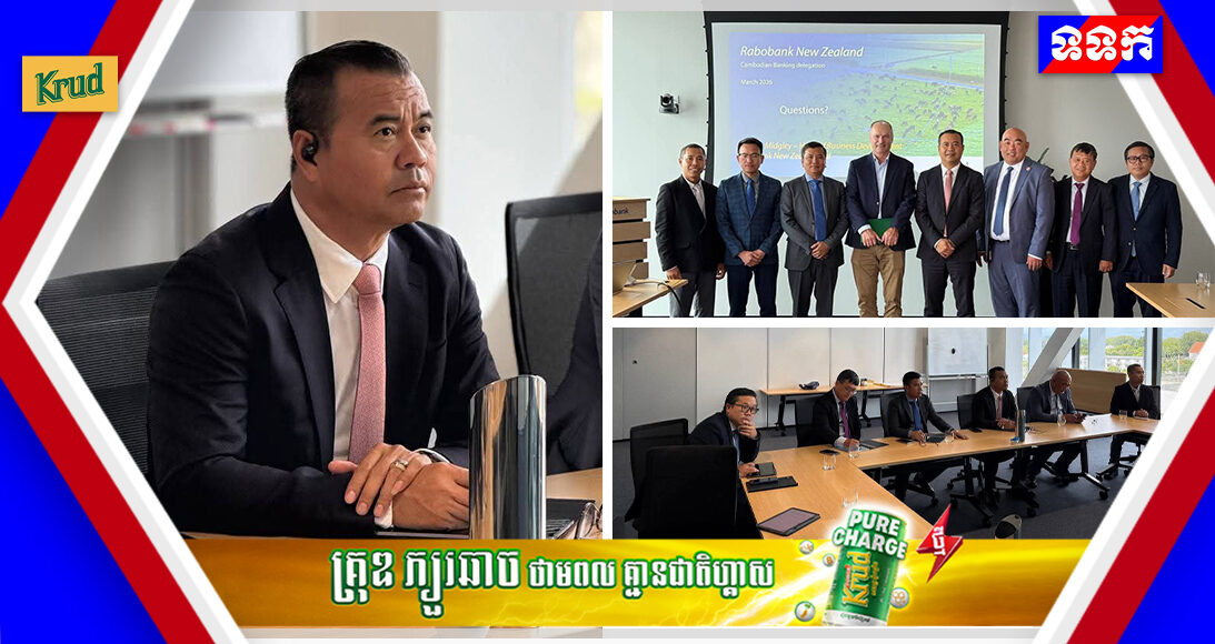 នូវែលហ្សេឡង់÷ថ្ងៃទី១៦ ខែមីនា ឆ្នាំ២០២៦ក្នុងដំណើរបំពេញទស្សនកិច្ចការងារនៅប្រទេសនូវែលហ្សេឡង់, ឯកឧត្តមបណ្ឌិត កៅ ថាច ប្រតិភូរាជរដ្ឋាភិបាល ទទួល បន្ទុកជាអគ្គនាយកនៃធនាគារអភិវឌ្ឍន៍ជនបទ និងកសិកម្ម (ARDB) បានអញ្ជើញជួបពិភាក្សាការងារ និងផ្លាស់ប្តូរបទពិសោធន៍ការងារ ជាមួយ តំណាងធនាគារ Rabobank ក្រោមការសម្របសម្រួលពី លោក ឃួយ ម៉ៃខល ប្រធានការិយាល័យតំណាងសភាពាណិជ្ជកម្មកម្ពុជា ប្រចាំប្រទេសនូវែលហ្សេឡង់។