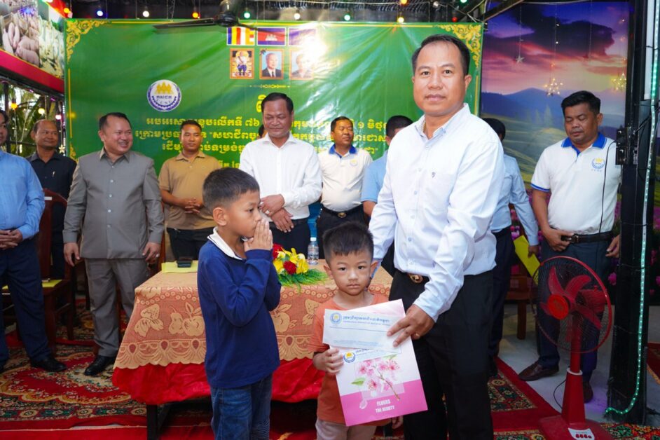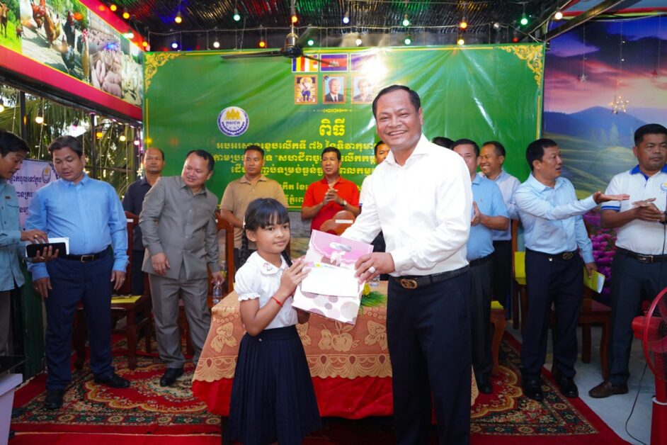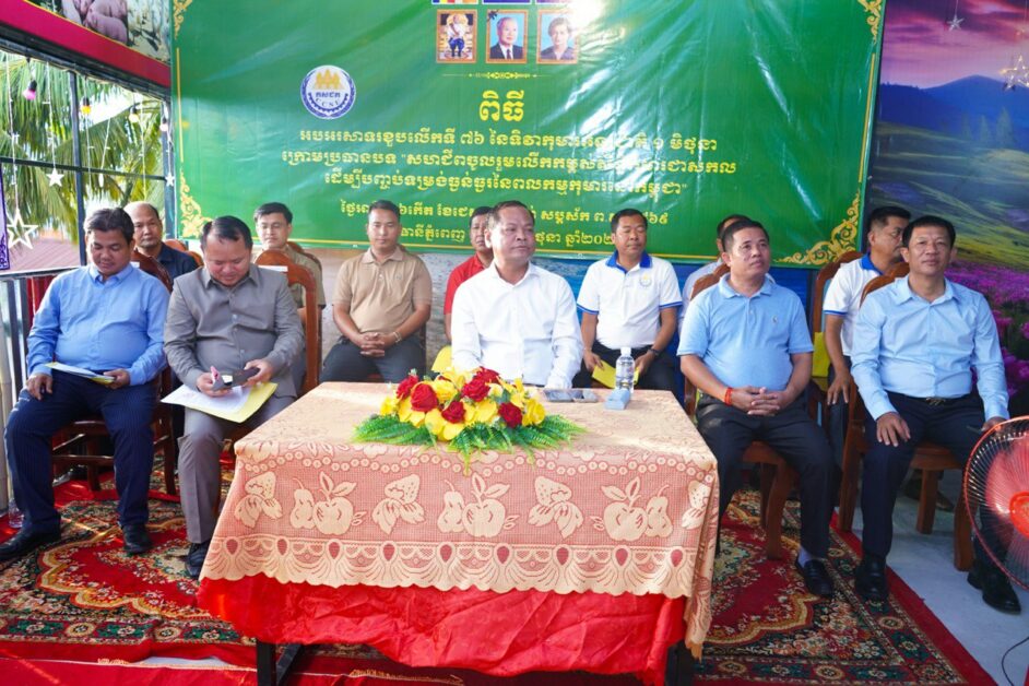 ដើម្បីអបអរសាទរទិវាកុមារអន្តរជាតិ លើកទី៧៦ ក្រោមប្រធានបទ «បញ្ឈប់អំពើហិង្សាលើកុមារ គ្រប់ទម្រង់ គឺជាការអភិវឌ្ឍធនធានមនុស្សប្រកបដោយចីរភាព» ឯកឧត្តម មុំ សៀក ប្រធានក្រុមប្រឹក្សាសហជីពជាតិកម្ពុជា បានរៀបចំកម្មវីធីសំណេះសំណាល ពិសាអាហារសាមគ្គី និងចែកអំណោយជូនកុមារា កុមារីដែលជាបុត្រា បុត្រីរបស់ថ្នាក់ដឹកនាំសហព័ន្ធ និងសហជីពមូលដ្ឋានមួយចំនួនក្នុងក្រុមប្រឹក្សាសហជីពជាតិកម្ពុជា។