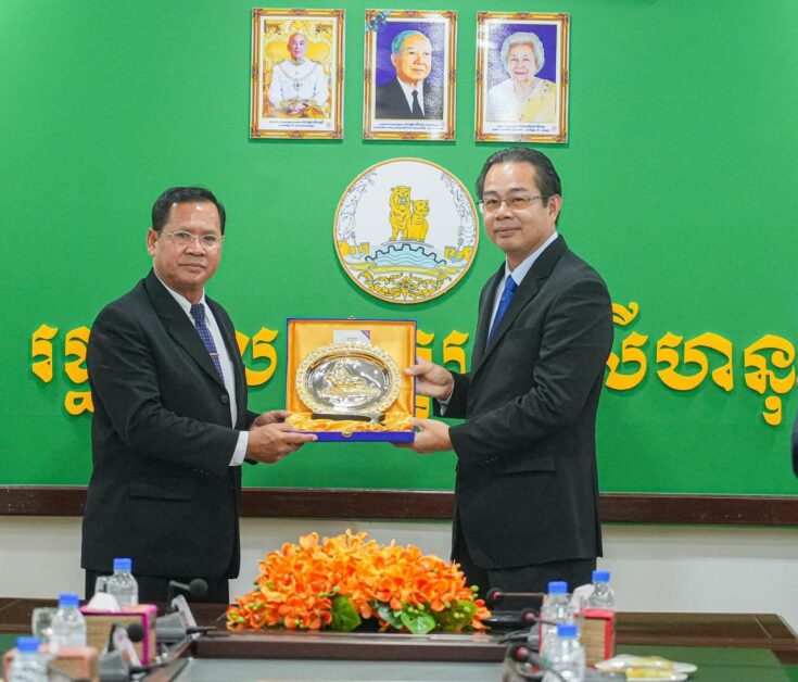 ឯកឧត្តម ម៉ាង ស៊ីណេត អភិបាល នៃគណ: អភិបាលខេត្តព្រះសីហនុ បានជួបពិភាក្សាការងារជាមួយឯកឧត្តម នាយឧត្តមសេនីយ៍ Vongsack Phanthvong ប្រធានគណៈ កម្មាធិការការពារជាតិ និងសន្តិសុខឡាវ និងជាប្រធានក្រុមមិត្តភាពរដ្ឋសភាឡាវ-កម្ពុជា ដែលបានរៀបចំធ្វើឡើងនៅកាលពីថ្ងៃសៅរ ទី១០ ខែឧសភា ឆ្នាំ២០២។