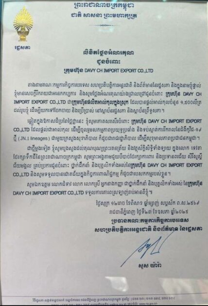 នៅក្នុងឳកាសដ៏ប្រពៃនោះដែរ ឯកឧត្តម តំណាងសម្ដេចប្រធានរដ្ឋសភា សូមកោតសរសើរដល់ លោកស្រី ជា ដាវី ជាប្រធានក្រុមហ៊ុន DAVY CH IMPORT EXPORT CO,LTD ដែលបានផ្ដល់ជាអាល់កុលទឹក ដើម្បីទប់ស្កាត់នៃការីករាលដាល និងចូលរួមសកម្មភាពប្រយុទ្ធប្រឆាំង នៃជំងឺកូវីដ១៩ថ្មី (JN.1) ជាមួយក្រសួងសុខាភិបាល ក៏ដូចជារាជរដ្ឋាភិបាលសម្រាប់យកទៅប្រើប្រាស់ឲ្យបានទាន់ពេលវេលាស្របពេលដែលមាន ជំងឺរាតត្បាតនៃជំងឺឆ្លងផ្សេងៗ និងដើម្បីចូលរួមចំណែកលើកកម្ពស់សុវត្តិភាពសុខភាពសាធារណៈរបស់មន្រ្តីក្រោមឪវ៉ាតផងដែរ៕