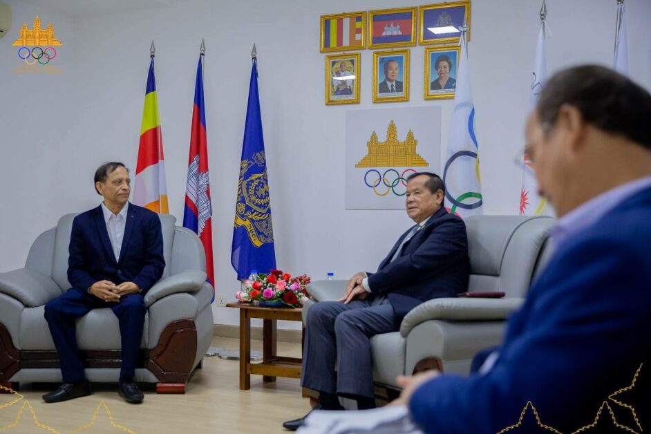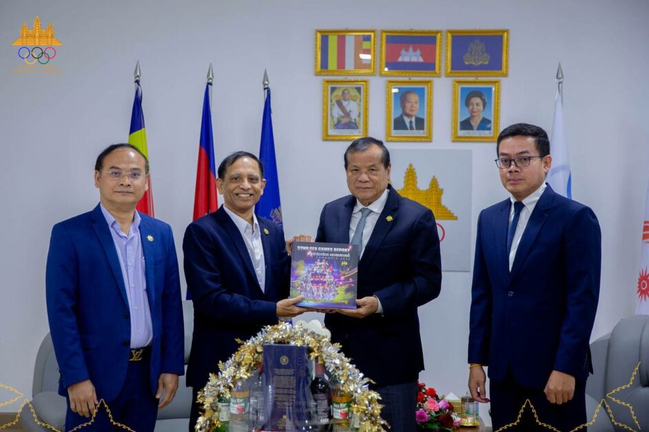 ឯកឧត្ដមបណ្ឌិតទេសរដ្ឋមន្ត្រី ថោង ខុន ប្រធានគណៈកម្មាធិការជាតិអូឡាំពិកកម្ពុជា បានអនុញ្ញាតឱ្យលោកបណ្ឌិត Sirajudeen ធុរជនជនជាតិឥណ្ឌា ចូលជួបសម្ដែងការគួរសម និងពិភាក្សាការងារសំខាន់ៗមួយចំនួននៅបន្ទប់សវនការនាស្នាក់ការគណៈកម្មាធិការជាតិអូឡាំពិកកម្ពុជា កាលពីថ្ងៃទី២៩ ខែមករា ឆ្នាំ ២០២៦។