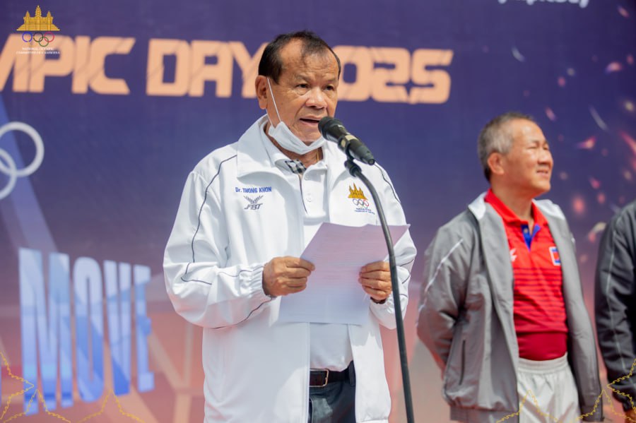 ឯកឧត្ដមបណ្ឌិតទេសរដ្ឋមន្ត្រី ថោង ខុន ប្រធានគណៈកម្មាធិការជាតិអូឡាំពិកកម្ពុជា (NOCC)បានអំពាវនាវ ដល់យុវជន សិស្សានុសិស្ស និងអត្តពលិកទាំងអស់ ចូលរួមអនុវត្ត និងផ្សព្វផ្សាយ យុទ្ធនាការជាតិ “យុវជនម្នាក់ ចេះកីឡា មួយប្រភេទ យ៉ាងតិចប្រចាំជីវិត” ជាមួយ នឹងការបំផុសចលនា “ហាត់ប្រាណ និងលេងកីឡា អស់មួយជីវិត” ការអំពាវរបស់ ឯកឧត្តមបណ្ឌិតទេសរដ្ឋមន្ត្រី បានធ្វើឡើង នៅក្នុងពិធីបើកកម្ម វិធីអបអរសាទរ ខួបលើកទី១៣១ ទិវាអូឡាំពិក កាលពីព្រឹកថ្ងៃអាទិត្យ ទី២២ ខែមិថុនា ឆ្នាំ២០២៥ នាទីលានបាល់ទាត់ នៃពហុកីឡដ្ឋានជាតិ មរតកតេជោ ។