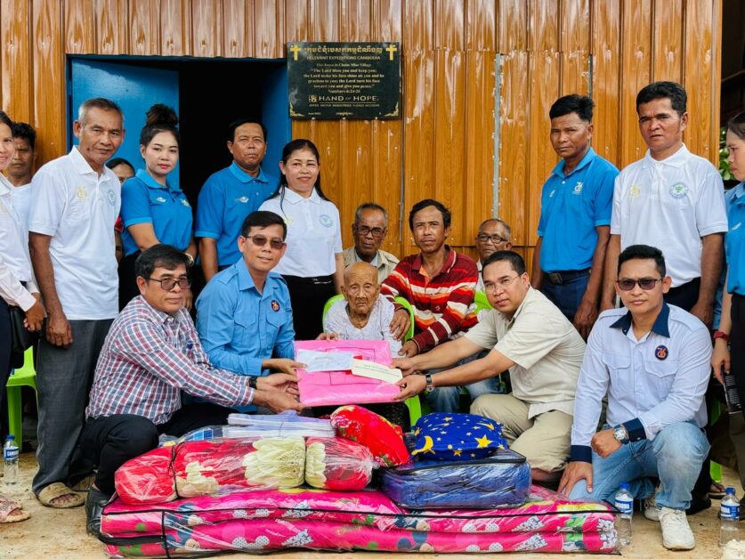 ឯកឧត្តមបណ្ឌិត ខាន់ ខុន អនុរដ្ឋលេខាធិការក្រសួងធម្មការនិងសាសនា ជាប្រធានសមាគមគ្រីស្ទបរិស័ទក្នុងសន្តិភាព និង លោកជំទាវ ខឹម បុប្ផា ទីប្រឹក្សាក្រសួងធម្មការនិងសាសនានិងជានាយិកា ក្រុមហ៊ុនប៊ីម៉ារៀលអ៊ីស្ទេត ឯ.ក ដោយមានការអញ្ជើញ ចូលរួមអមដំណើរពីអាជ្ញាធរមូលដ្ឋាន និងក្រុមការងារ សមាគមគ្រីស្ទបរិស័ទក្នុងសន្តិភាព បានអញ្ជើញជាអធិបតី ក្នុងការចុះសំណេះសំណាលជាមួយប្រជាពលរដ្ឋ និងប្រគល់ផ្ទះ ព្រមទាំងសម្ភារប្រើប្រាស់សម្រាប់ការរស់នៅប្រចាំថ្ងៃជូនដល់ស្ត្រីមេម៉ាយដែលចិញ្ចឹមចៅៗកំព្រា និងប្រគល់អណ្ដូងទឹកស្អាតអាហ្វ្រ៊ីដេសដល់សហគមន៍ដែលខ្វះខាតទឹកប្រើប្រាស់។