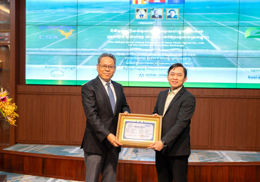 នាព្រឹកថ្ងៃទី ២១ ខែ មករា ឆ្នាំ ២០២៦ នៅអគារផ្សារមូលបត្រកម្ពុជា, ផ្សារមូលបត្រកម្ពុជា បានរៀបចំ “ពិធីចុះបញ្ជីលក់សញ្ញាបណ្ណសាជីវកម្មជាផ្លូវការរបស់ក្រុមហ៊ុន ដូនពេញ អាហ្រ្គីកូ”, ក្រោមអធិបតីភាព ឯកឧត្តមបណិ្ឌតសភាចារ្យហ៊ាន សាហ៊ីប រដ្ឋលេខាធិការនៃក្រសួងសេដ្ឋកិច្ច និងហិរញ្ញវត្ថុ និង ជាប្រធានក្រុមប្រឹក្សាភិបាលនៃផ្សារមូលបត្រកម្ពុជា ដោយមានការអញ្ជើញចូលរួមពី ឯកឧត្តម ស៊ូ សុជាតិ ប្រតិភូរាជរដ្ឋាភិបាលទទួលបន្ទុកជាអគ្គនាយកនៃនិយ័តករមូលបត្រកម្ពុជា, ឯកឧត្តម ហុង សុហួរ ប្រតិភូរាជរដ្ឋាភិបាលទទួលបន្ទុកជាអគ្គនាយកផ្សារមូលបត្រកម្ពុជា, លោក ផាន់ បាគឿង អគ្គនាយករង នៃក្រុមហ៊ុន ដូនពេញ អាហ្រ្គីកូ, ឯកឧត្តម លោកជំទាវ, ឧកញ៉ា, លោក លោកស្រី តំណាងក្រសួងស្ថាប័ន និង វិស័យឯកជន ព្រមទាំងភ្ញៀវកិត្តិយសជាច្រើនរូប ។