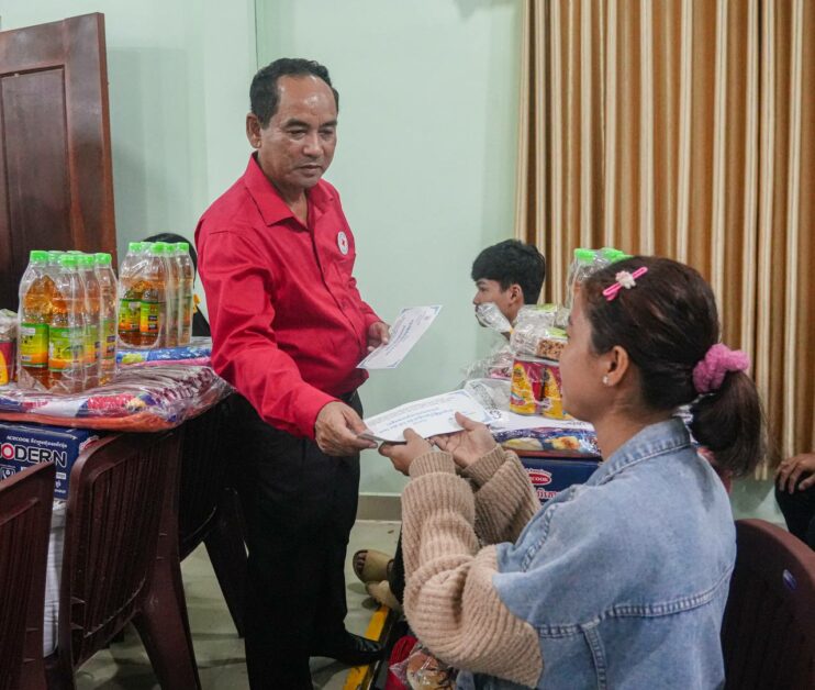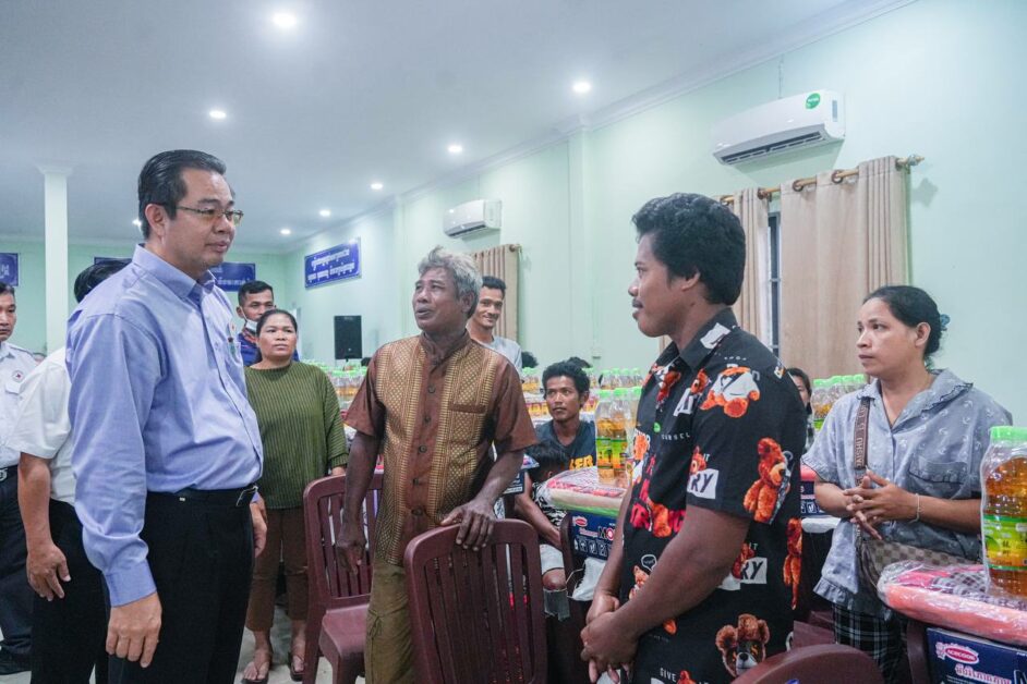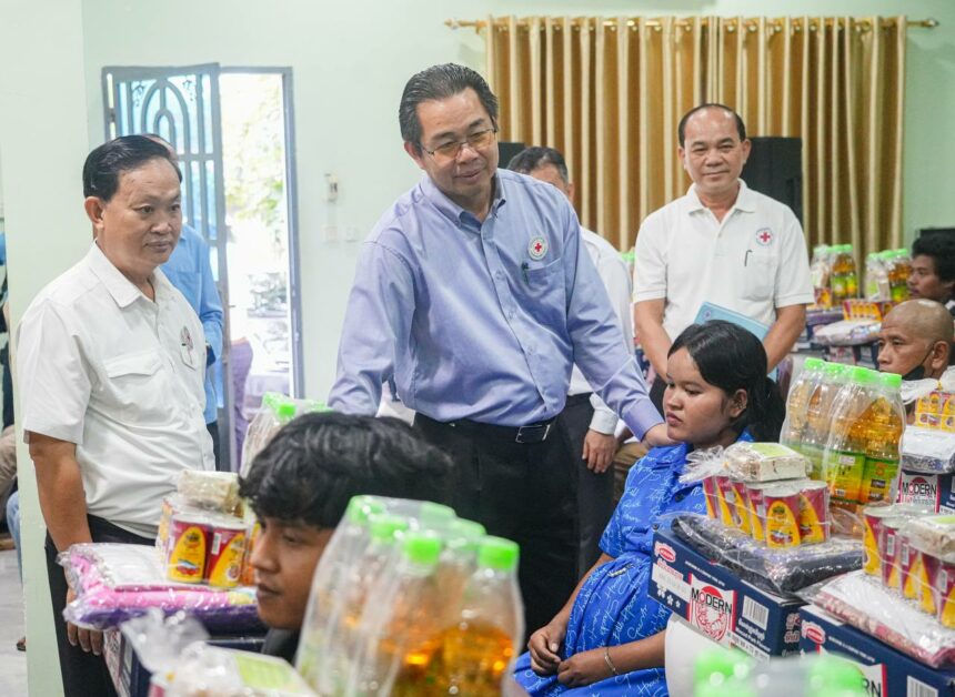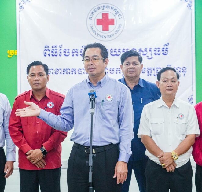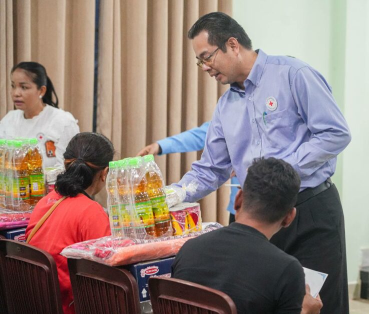 ឯកឧត្តម ម៉ាង ស៊ីណេត ប្រធានគណ:កម្មាធិការសាខាកាកបាទក្រហមកម្ពុជា ខេត្តព្រះសីហនុ នារសៀលថ្ងៃទី២ ខែតុលា ឆ្នាំ២០២៥នេះ បានដឹកមន្ត្រីសាខា អនុសាខា ចុះសួរសុខទុក្ខ និងនាំយកអំណោយមនុស្សធម៌ផ្ដល់ជូនបងប្អូនពលករខ្មែរមកពីប្រទេសថៃចំនួន ៦៦នាក់ ស្ថិតនៅក្នុងស្រុកព្រៃនប់ ខេត្តព្រះសីហនុ ។ នេះគឺជាការលើក ទឹកចិត្តឱ្យពលករខ្មែរ ដែលបានវិលត្រឡប់មកពីប្រទេសថៃ ងាកមកធ្វើការងារនៅក្នុងស្រុកវិញ ព្រោះយើងនូវខ្វះកម្លាំងពលកម្មជាច្រើនទៀត ។