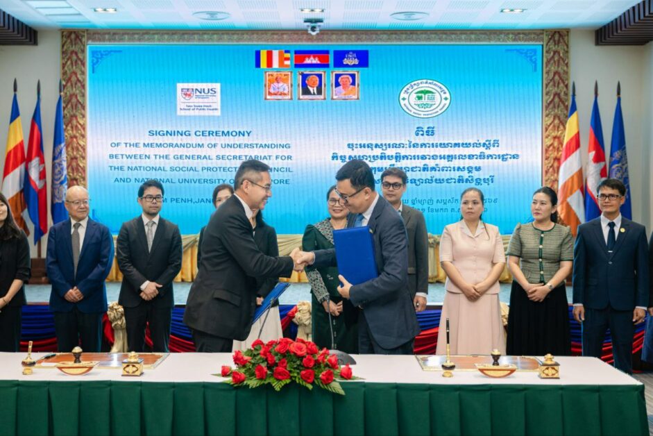 នៅរសៀលថ្ងៃពុធ ៣កើត ខែមាឃ ឆ្នាំម្សាញ់ សប្តស័ក ព.ស. ២៥៦៩ ត្រូវនឹងថ្ងៃទី២១ ខែមករា ឆ្នាំ២០២៦ ដោយទទួលបានការអនុញ្ញាតដ៏ខ្ពង់ខ្ពស់ពី ឯកឧត្តមអគ្គបណ្ឌិតសភាចារ្យ អូន ព័ន្ធមុនីរ័ត្ន ឧបនាយករដ្ឋមន្ត្រី រដ្ឋមន្ត្រីក្រសួងសេដ្ឋកិច្ច និងហិរញ្ញវត្ថុ និងជាប្រធានក្រុមប្រឹក្សាជាតិគាំពារសង្គម,អគ្គលេខាធិការដ្ឋានក្រុមប្រឹក្សាជាតិគាំពារសង្គម (អ.ក.គ.) និងមហាវិទ្យាល័យសុខភាពសាធារណៈ នៃសាកលវិទ្យាល័យជាតិសិង្ហបុរី បានចុះអនុស្សរណៈនៃការយោគយល់គ្នា ស្តីពីកិច្ចសហប្រតិបត្តិការរវាង អ.ក.គ.និងមហាវិទ្យាល័យសុខភាពសាធារណៈ នៃសាកលវិទ្យាល័យជាតិសិង្ហបុរី សម្រាប់គាំទ្រការអនុវត្តផែនទីបង្ហាញផ្លូវឆ្ពោះទៅការគ្របដណ្តប់សុខភាពជាសកលនៅកម្ពុជា ឆ្នាំ២០២៤-២០៣៥។