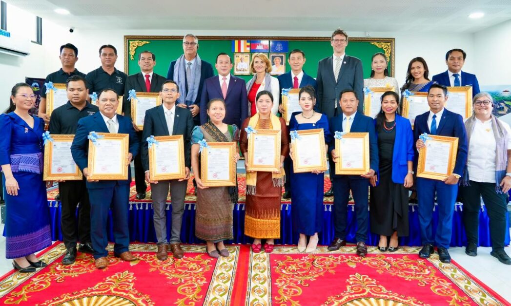 សូមបញ្ជាក់ថា ពិធីនេះក៏មានការប្រគល់នូវវិញ្ញបនបត្របណ្តុះបណ្តុះវិជ្ជាជីវៈជូនគ្រូបង្គោលរបស់សាលាវិជ្ជាជីវៈទេសចរណ៍ ចំនួន ១៧រូប ដែលបានបញ្ចប់វគ្គបណ្តុះបណ្តាលដោយជោគជ័យផងដែរ៕