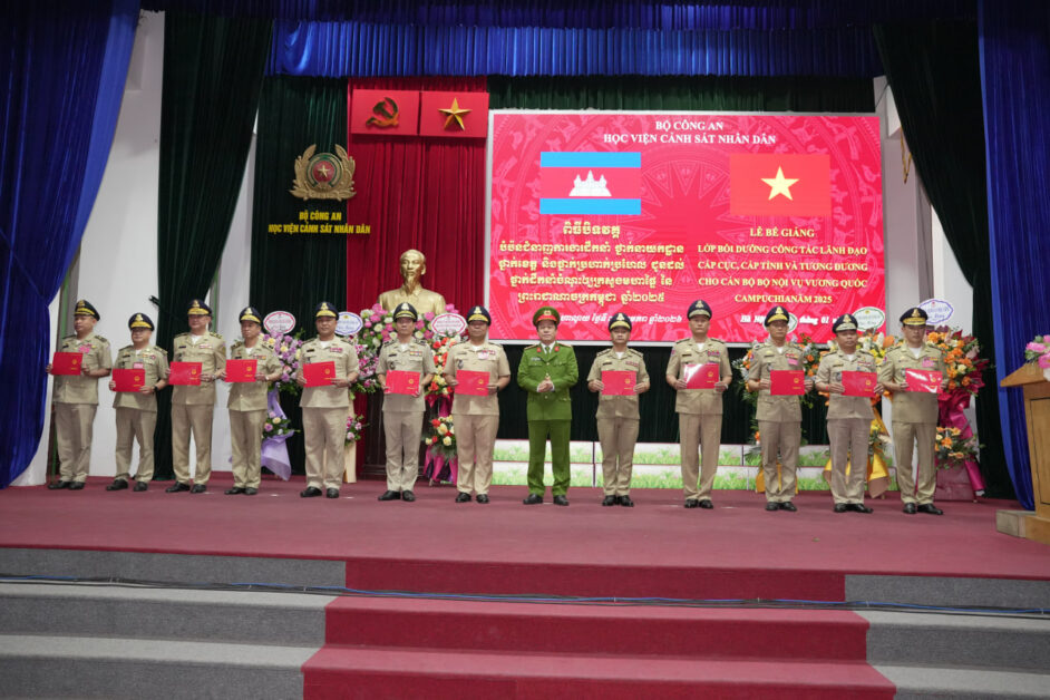 ពិធីបិទវគ្គបំប៉នជំនាញការងារដឹកនាំ សម្រាប់ថ្នាក់ដឹកនាំនាយកដ្ឋាន និងថ្នាក់ដឹកនាំស្នងការដ្ឋានខេត្ត និងថ្នាក់ប្រហាក់ប្រហែល នៅបណ្ឌិត្យសភាតម្រួតប្រជាជនវៀតណាមភាគខាងជើង