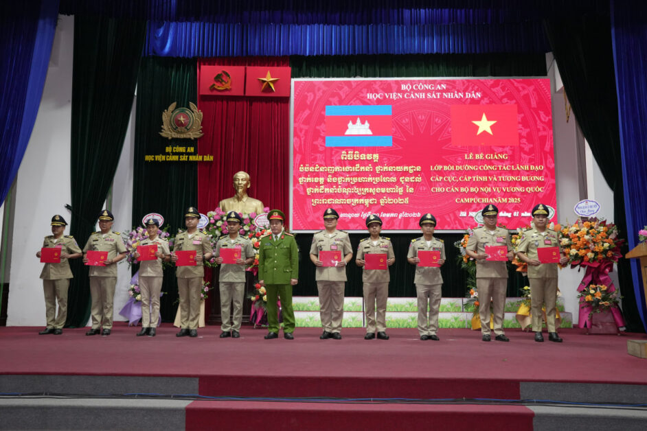 រដ្ឋធានីហាណូយ ៖ នាព្រឹកថ្ងៃទី៣០ ខែមករា ឆ្នាំ២០២៦ នេះ នៅបណ្ឌិត្យសភាតម្រួតប្រជាជនវៀតណាមភាគខាងជើង នៃសាធារណៈរដ្ឋសង្គមនិយមវៀតណាម បានប្រារព្ធពិធីបិទវគ្គបំប៉នជំនាញការងារដឹកនាំ សម្រាប់ថ្នាក់ដឹកនាំនាយកដ្ឋាន និងថ្នាក់ដឹកនាំស្នងការដ្ឋានខេត្ត និងថ្នាក់ប្រហាក់ប្រហែល ដោយមានការអញ្ជើញចូលរួមជាគណៈអធិបតីពី លោកព្រឹទ្ធបុរស បណ្ឌិត សាស្រ្តចារ្យឆ្នើម ជិន មិញហឿង នាយកសាលាបណ្ឌិត្យសភាតម្រួតប្រជាជន ព្រមជាមួយថ្នាក់ដឹកនាំនៃសាលាបណ្ឌិត្យសភាតម្រួតប្រជាជន តំណាងស្ថានទូតនៃព្រះរាជាណាចក្រកម្ពុជា ប្រចាំនៅរដ្ឋធានីហាណូយ និងនាយនគរបាលជាន់ខ្ពស់កម្ពុជា ជាសិក្ខាកាមចំនួន ៦០រូប ផងដែរ។