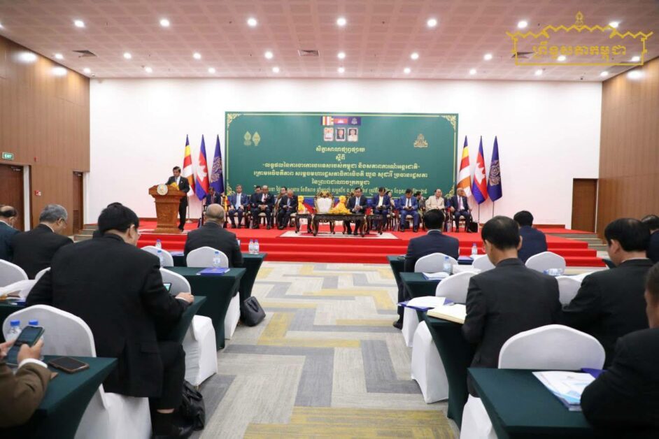 ឯកឧត្តម អ៊ុច បូររិទ្ធ អនុប្រធានទី១ ព្រឹទ្ធសភា នៃព្រះរាជា ណាចក្រកម្ពុជា និងឯកឧត្តម ឧបនាយករដ្ឋមន្រ្តី ប្រាក់ សុខុន រដ្ឋមន្រ្តីក្រសួងការបរទេស និងសហប្រតិបត្តិការអន្តរជាតិ អញ្ជើញជាអធិបតី ពិធីបិទសិក្ខាសាលាផ្សព្វផ្សាយស្តីពី លទ្ធផលនៃការងារការបរទេសរបស់កម្ពុជា និងសភាពការណ៍អន្តរជាតិ នៅវិមានរដ្ឋសភា នាថ្ងៃទី២១ ខែឧសភា ឆ្នាំ២០២៥។