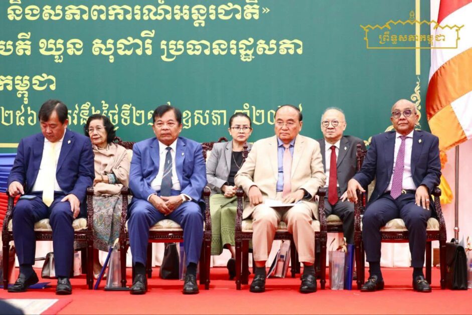 ឯកឧត្តម អ៊ុច បូររិទ្ធ អនុប្រធានទី១ ព្រឹទ្ធសភា នៃព្រះរាជា ណាចក្រកម្ពុជា និងឯកឧត្តម ឧបនាយករដ្ឋមន្រ្តី ប្រាក់ សុខុន រដ្ឋមន្រ្តីក្រសួងការបរទេស និងសហប្រតិបត្តិការអន្តរជាតិ អញ្ជើញជាអធិបតី ពិធីបិទសិក្ខាសាលាផ្សព្វផ្សាយស្តីពី លទ្ធផលនៃការងារការបរទេសរបស់កម្ពុជា និងសភាពការណ៍អន្តរជាតិ នៅវិមានរដ្ឋសភា នាថ្ងៃទី២១ ខែឧសភា ឆ្នាំ២០២៥។
