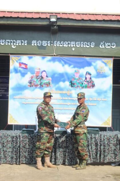 ពិធីប្រគល់អាវភ្លៀងដែលជាអំណោយដ៏ថ្លៃថ្លារបស់ សម្តេចអគ្គមហាសេនាបតីតេជោ ហ៊ុន សែន និងសម្តេចកិត្តិព្រឹទ្ធបណ្ឌិត ប៊ុន រ៉ានី ហ៊ុន សែន ជូនបណ្តាអង្គភាពឈរជើងនៅតាមព្រំដែន ទិសយោធ ភូមិភាគទី៥