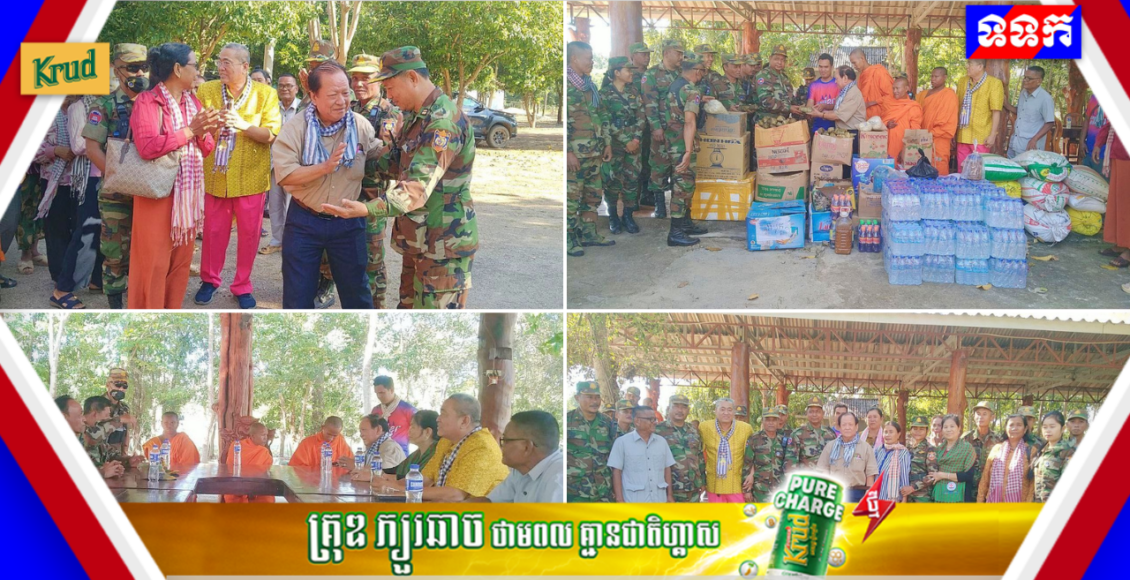 ៧.បច្ច័យក្រុមការងារសរុបរួមមាន ចំនួន ២លានរៀលផងដែរ ។ នាក្នុងឪកាសនោះឯកឧត្តម បណ្ឌិត សាយ ឫទ្ធី បានមានប្រសាសន៍ថា ក្នុងការអញ្ជើញចុះសួរសុខទុក្ខ និងនាំយកអំណោយមកផ្តល់ជូនដល់កងកំលាំង វរ:កងទ័ពរបស់យើងនាពេលនេះ សម្រាប់ជាកម្លាំងចិត្តដល់កងទ័ពក្នុងដំណើរទស្សនកិច្ច និងការនាំយកអំណោយនេះ គឺជាការបង្ហាញពីស្មារតីសាមគ្គីភាព សេចក្តីស្រឡាញ់ ការយកចិត្តទុកដាក់ និងការគាំទ្រយ៉ាងពេញទំហឹងពីព្រះសង្ឃ លោកអាចារ្យ និងបងប្អូនពុទ្ធ បរិស័ទ ចំពោះកងទ័ពដែលកំពុងបំពេញ ភារកិច្ចការពារអធិបតេយ្យភាព និងបូរណ ភាពដែនដីជាតិ។