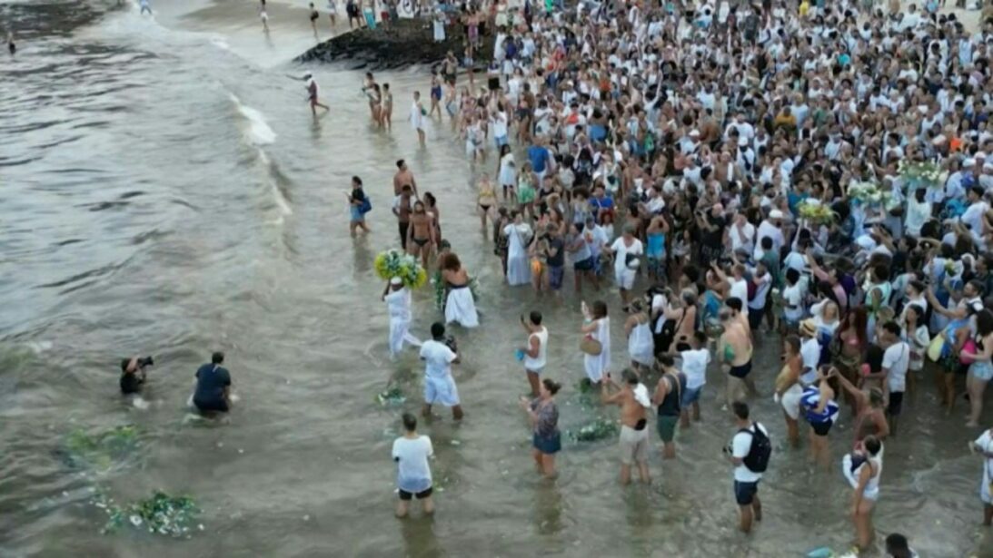 មនុស្សរាប់ពាន់នាក់បានមកប្រមូលផ្តុំគ្នានៅលើឆ្នេរ Rio ក្លាយជាវប្បធម៌ទៅហើយ ដើម្បីថ្វាយបង្គំដល់ទេពធីតាសមុទ្រ ដ៏ស័ក្កសិទ្ធិរបស់ពួកគេដែលមានឈ្មោះថា Yemanjá
