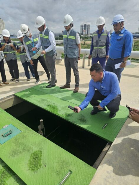 មន្ត្រីបច្ចេកទេសប្រព័ន្ធចម្រោះទឹក រួមមាន កម្ពុជា ជប៉ុន បង់ក្លាដេស ហ្វីលីពីន ឥណ្ឌូណេស៊ី និងវៀតណាម ទស្សនកិច្ចសិក្សានៅស្ថានីយប្រព្រឹត្តកម្មទឹកកខ្វក់ជើងឯក រាជធានីភ្នំពេញ