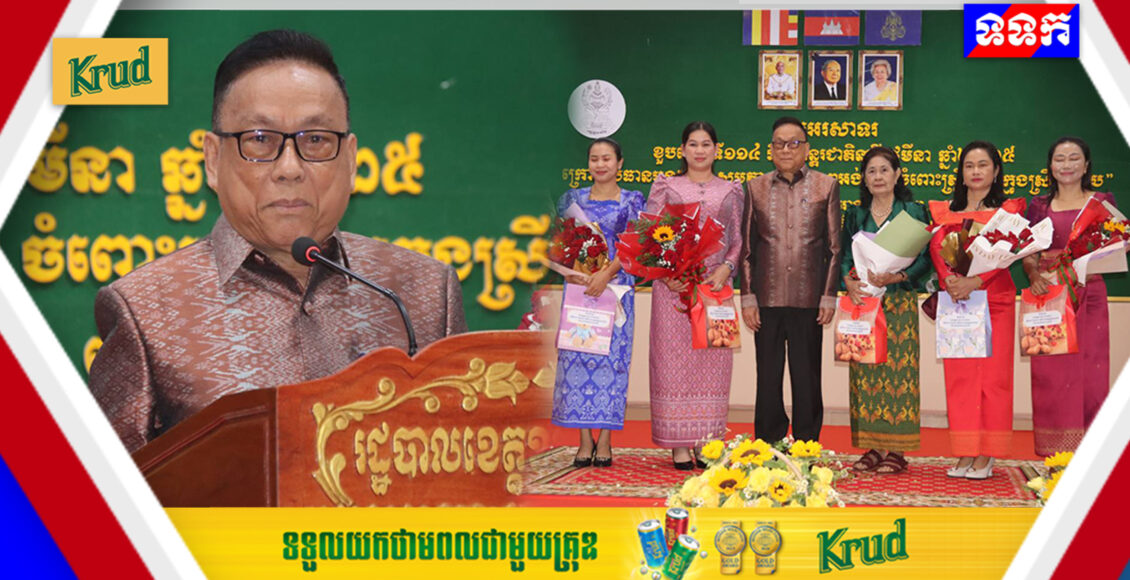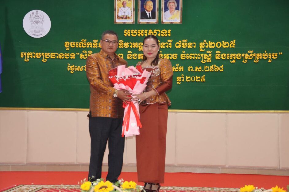 ឧត្តរមានជ័យ៖ មន្ទីរកិច្ចការីខេត្តឧត្តរមានជ័យ បានប្រារព្ធពិធីអបអរសាទរខួបលើកទី១១៤ទិវាអន្តរជាតិ ៨មីនា ឆ្នាំ២០២៥ ក្រោមប្រធានបទ (សិទ្ធិ សមភាព និងភាពអង់អាច ចំពោះស្រ្តី និងក្មេងស្រីគ្រប់រូប)ដែលពិធីនេះ បានប្រព្រឹត្តិទៅ ក្រោមអធិបតីភាពឯកឧត្តម ស៊ី ប្រាសិទ្ធ ប្រធានក្រុមប្រឹក្សាខេត្តឧត្តរមានជ័យនិងលោកស្រី មុំ ពុទ្ធីតា អភិបាលរងខេត្តនិងជាប្រធានសមាគមន៌នារីខេត្តឧត្តរមានជ័យរួមទាំងមានស្រ្តីៗមកពីតាមបណ្តាលមន្ទីរស្ថាប័នអង្គភាពនានាចូលរួមយ៉ាងច្រើនកុះករនាព្រឹកថ្ងៃទី ៨ មីនា ឆ្នាំ២០២៥។ ជាកិច្ចចាប់ផ្តើម នៃអង្គពិធី លោកស្រីឯក សុភារុំ ប្រធានមន្ទីរកិច្ចការនារីខេត្តឧត្តរមានជ័យបានលើកឡើងនូវរបាយការណ៌មួយចំនួនរួចមក។