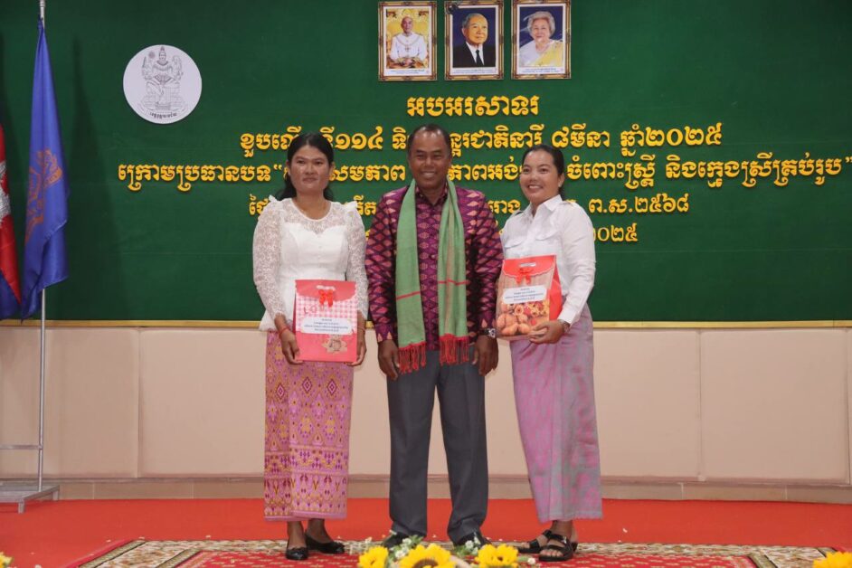ជាមួយគ្នានោះដែរឯកឧត្តមក៏បានផ្តល់នូវការដូវត្ថុអនុស្សាវរីយ៏ជូន ដល់ បងប្អូនជាស្រ្តីដែលចូលរួមក្នុងអង្គពិធីដើម្បីអបអរសាទរក្នុងឳកាសខួបលើកទី១១៤ទិវាទអន្តរជាតិនារី៨មីនាឆ្នាំ២០២៥នេះនិងបន្តដំណើរចុះសួរសុខទុក្ខនិងចែកអំណោយមនុដ្សធម៏ជូនដល់ស្រ្តីដែលកំពុងសម្រាកសម្រាលកូននៅមន្ទីរពេទ្យបង្អែកខេត្តចំនួន១៣នាក់និងគ្រូពេទ្យឆ្មបមួយចំនួនទៀតផងដែរ៕