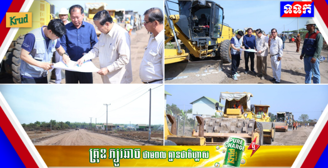 ខេត្តត្បូងឃ្មុំ៖ ឯកឧត្តម ប៊ុន ចន្ទវណ្ណៈ រដ្ឋលេខាធិការ ក្រសួងអភិវឌ្ឍន៍ជនបទ និងក្រុមការងារ ចុះពិនិត្យការបើកការដ្ឋានការងារស្ថាបនាផ្លូវក្រាលដីល្បាយក្រួសចំនួន ១ខ្សែ (មាន ៨កំណាត់) ប្រវែង សរុប ៤,៣៦៥ម ទទឹង ៨ម កម្រាស់ ០,២ម សាងសង់លូមូលមុខមួយចំនួន ១៤កន្លែង ផ្លាកសញ្ញាចរាចរណ៍ចំនួន ៤៨ផ្លាក និងផ្លាកឈ្មោះផ្លូវចំនួន ១កន្លែង ស្ថិតនៅគម្រោងដីសម្បទានសង្គមកិច្ច ក្នុងភូមិត្រពាំងផ្លុងទី១ ឃុំត្រពាំងផ្លុង ស្រុកពញាក្រែក ខេត្តត្បូងឃ្មុំ។