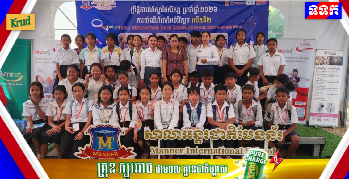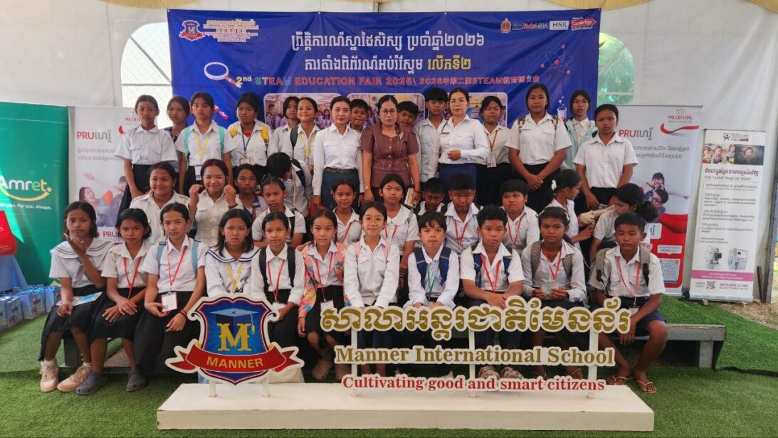 ការតាំងពិព័រណ៍អប់រំស្ទីម លើកទី២ និងបំពាក់មេដាយ បណ្ណសរសើរ ត្រូវបានរៀបចំដោយ សាលាអន្តរជាតិមែនន័រ នៅរសៀលថ្ងៃទី០៤ ខែមេសា ឆ្នាំ២០២៦ ក្នុងព្រឹត្តិការណ៍ស្នាដៃសិស្ស ប្រចាំឆ្នាំ២០២៦