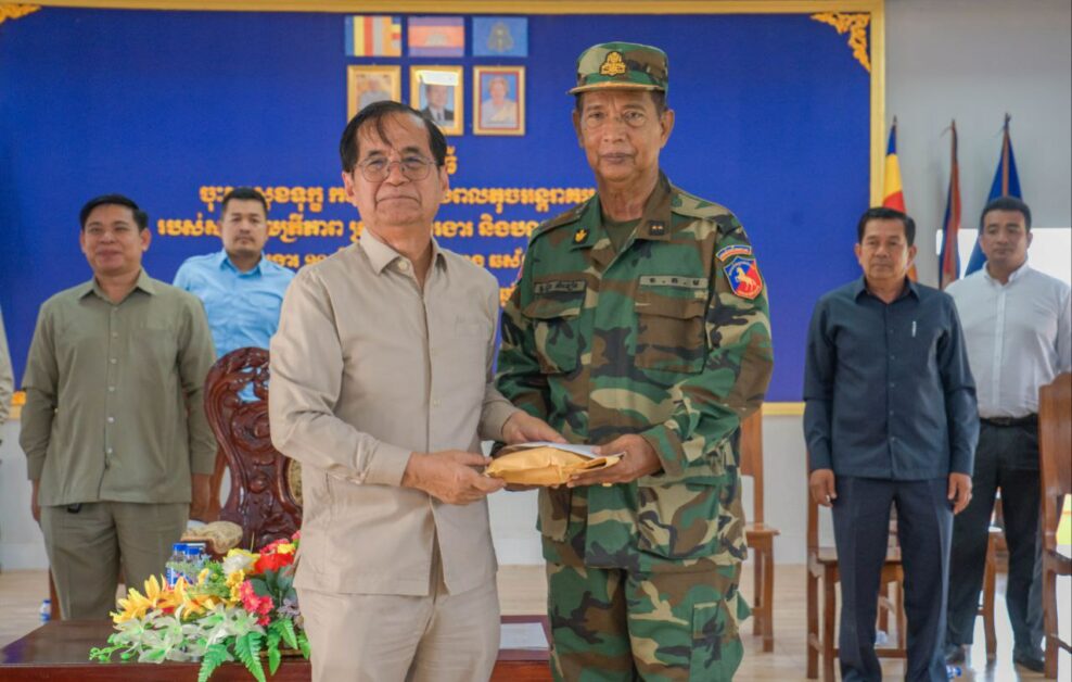 នាឱកាសគួរជាទីសោមនស្សនេះ ឯកឧត្តមរដ្ឋលេខាធិការ បានពាំនាំនូវការផ្តាំផ្ញើការសួរសុខទុក្ខពីសំណាក់សម្តេចមហាបវរធិបតី ហ៊ុន ម៉ាណែត នាយករដ្ឋមន្រ្តី និងលោកជំទាវបណ្ឌិត ពេជ ចន្ទមុន្នី ហ៊ុនម៉ាណែត ព្រមទាំងពីសំណាក់ឯកឧត្តមរដ្ឋមន្ត្រី ហេង សួរ ដែលជានិច្ចកាលតែងគិតគូរចំពោះសុខទុក្ខ និងការរស់នៅរបស់បងប្អូននាយទាហាន នាយទាហានរង និងពលទាហាន។ ស្របតាមការយកចិត្តទុកដាក់នេះ ក្រសួងតែងបានកៀរគរថវិកា គ្រឿងឧបភោគបរិភោគ សម្ភារៈប្រើប្រាស់ផ្សេងៗ ដើម្បីនាំមកចែកជូននាយទាហាន នាយទាហានរង និងពលទាហាន ដូចក្នុងឱកាសនេះជាដើម។