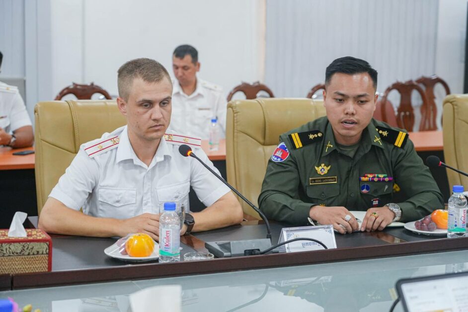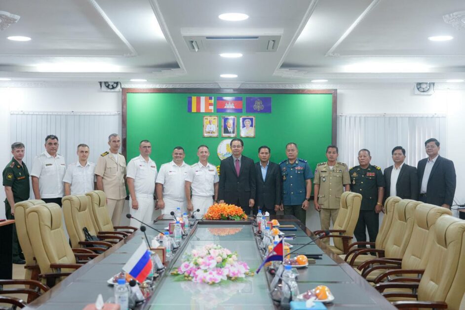 ឯកឧត្តម ម៉ាង ស៊ីណេត អភិបាល នៃគណ: អភិបាល ខេត្តព្រះសីហនុ អញ្ជើញទទួល ស្វាគមន៍ និងសំណេះ សំណាលព្រមទាំងពិភាក្សាការងារជាមួយ មេបញ្ជាការ និងនាវិកនាវាកងទ័ពជើងទឹករុស្ស៊ី ដែលបានចូលចតនៅកំពង់ផែស្វយ័តក្រុងព្រះសីហនុ ដើម្បីបំពេញទស្សនកិច្ចផ្លូវការនៅលើ ទឹកដីតំបន់ឆ្នេរដ៏ស្រស់បំព្រង នៃខេត្តព្រះសីហនុ ដែលធ្វើឡើងនៅរសៀលថ្ងៃចន្ទ ទី២៨ ខែមេសា ឆ្នាំ២០២៥នេះ។