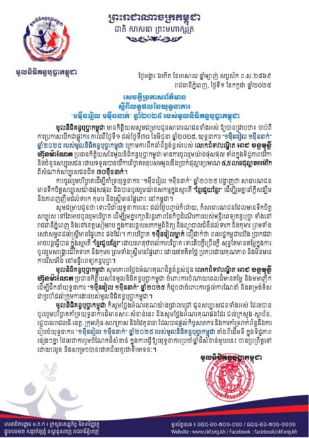 សូមជម្រាបជូនថា យុទ្ធនាការ “១ម៉ឺនរៀល ១ម៉ឺននាក់” ឆ្នាំ២០២៥ បានរៀបចំពិធីបើកជាផ្លូវការការពីថ្ងៃទី១ ខែមិថុនា ឆ្នាំ២០២៥ ក្រោមអធិបតីភាពរបស់លោកជំទាវបណ្ឌិត ពេជ ចន្ទមុន្នី ហ៊ុនម៉ាណែត ប្រធានកិត្តិយសនៃមូលនិធិគន្ធបុប្ផាកម្ពុជា។