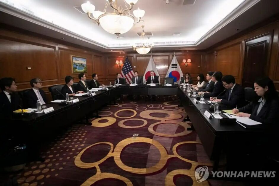 រដ្ខមន្រ្តីការបទេសអាម៉េរិកជួបគ្នាភ្លាមៗជាមួយមន្ត្រីការទូតជប៉ុននិងកូរ៉េខាងត្បូងនៅក្រៅកិច្ចប្រជុំអាស៊ានម៉ាឡេស៊ី! ខណៈមេដឹកនាំជាន់ខ្ពស់ ការពារជាតិពួកគេជួបគ្នាត្រីភាគីនៅកូរ៉េខាងត្បូង