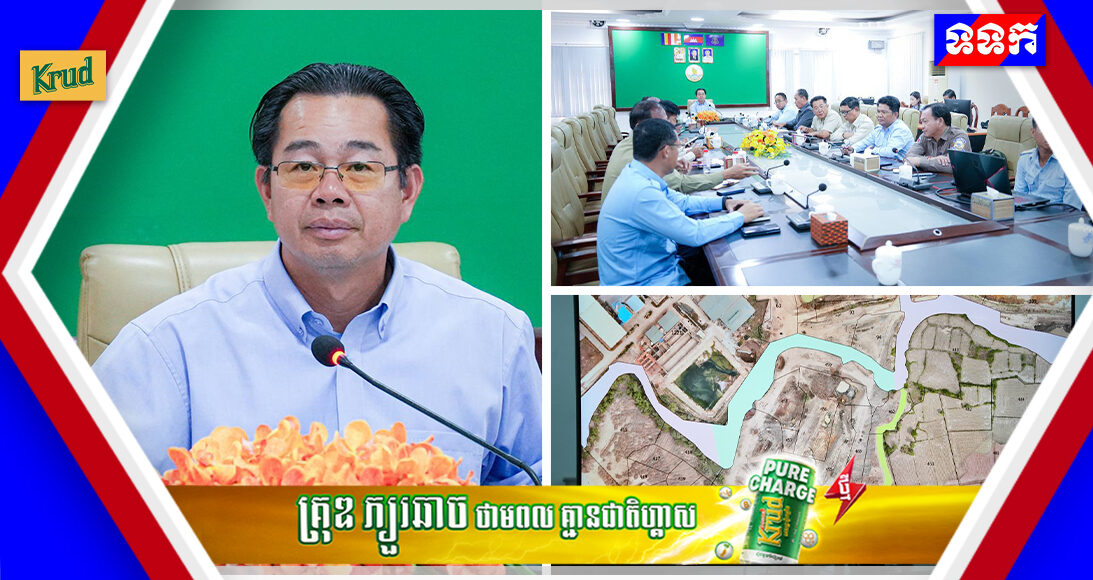 ខេត្តព្រះសីហនុ៖ ឯកឧត្តម ម៉ាង ស៊ីណេត អភិបាលនៃគណៈអភិបាលខេត្តព្រះសីហនុ នារសៀលថ្ងៃចន្ទ ទី៩ ខែមីនា ឆ្នាំ២០២៦ បានដឹកនាំកិច្ចប្រជុំពិនិត្យរបាយការណ៍ស្តីពីសំណើរបស់ក្រុមហ៊ុន គូ ប៊ុន (ខេមបូឌា) បាយអូថេកណឡូជី .ក ដែលស្នើសុំពង្វៀងប្រឡាយទឹក (អូរវាលស្បូវ) ស្ថិតនៅភូមិតាអោងធំ ឃុំសាមគ្គី ស្រុកព្រៃនប់។