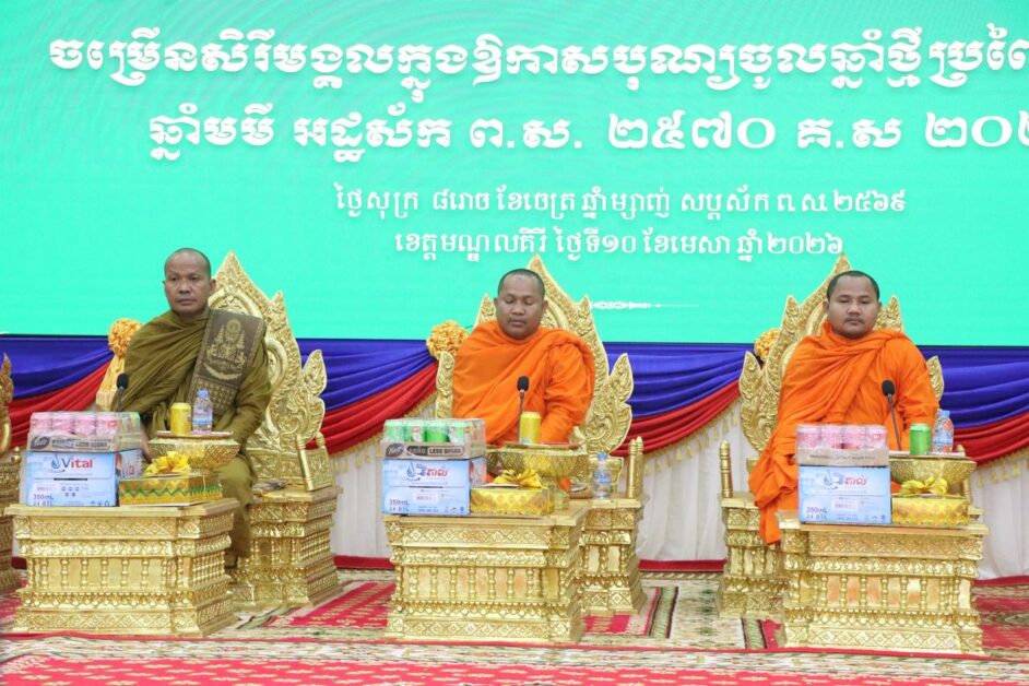 មណ្ឌលគិរី ៖ នៅក្នុងឱកាសត្រៀមអបអរសាទរពិធីបុណ្យចូលឆ្នាំថ្មី ប្រពៃណីជាតិខ្មែរ នារសៀលថ្ងៃទី១០ ខែមេសា ឆ្នាំ២០២៦ រដ្ឋបាលខេត្តមណ្ឌលគិរី បានរៀបចំពិធីចម្រើនសិរីមង្គល ក្នុងឱកាសបុណ្យចូលឆ្នាំថ្មី ឆ្នាំមមី អដ្ឋស័ក ព.ស.២៥៧០ គ.ស ២០២៦ និងសំណេះសំណាលជាមួយមន្ត្រីរាជការ និងពិសារអាហារសាមគ្គី ក្រោមអធិបតីភាព ឯកឧត្តម ម៉ែន ង៉ុយ ប្រធានក្រុមប្រឹក្សាខេត្ត និងលោកជំទាវ និងឯកឧត្តម ថង សាវុន អភិបាល នៃគណៈអភិបាលខេត្តមណ្ឌលគិរី និងលោកជំទាវ រួមទាំងមន្រ្តីរាជការ អង្គការដៃគូ វិស័យឯកជនជាច្រើនរូប ដែលប្រព្រឹត្តទៅនៅសាលប្រជុំសាលាខេត្ដមណ្ឌលគិរី។