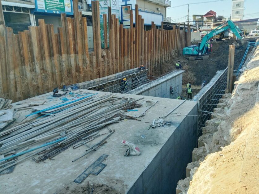 រដ្ឋបាលរាជធានីភ្នំពេញ មន្ទីរសាធារណការ និងដឹកជញ្ជូនរាជធានីភ្នំពេញ បានសម្រេចស្ថាបនាជញ្ជាំងបេតុងឆ្អឹងដែង១៦លី និង១២លី ចាក់នូវនឹងកន្លែងដ៏ធំមានសារៈសំខាន់ ប្រវែងជាង២៤៨ម៉ែត្រ ទទឹង៨ម៉ែត្រ ជម្រៅ៦ម៉ែត្រ កម្រាស់បេតុងឆ្អឹងដែក ៤តឹក បាតក្រាល់ខ្សាច់ (សម្រេចបាន៧៥%) ស្ថិតក្នុងខណ្ឌមានជ័យ