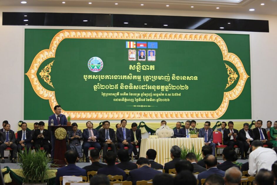 ភ្នំពេញ ៖ ឯកឧត្តម ឌិត ទីណា រដ្ឋមន្ត្រីក្រសួងកសិកម្ម ក្នុងពិធីបិទសន្និបាតបូកសរុបការងារប្រចាំឆ្នាំ២០២៥ និងលើកទិសដៅឆ្នាំ២០២៦ របស់ក្រសួងកសិកម្ម រុក្ខាប្រមាញ់ និងនេសាទ នៅរសៀលថ្ងៃទី១៩ ខែមីនា ឆ្នាំ២០២៦ បានដាក់ចេញទិសដៅអាទិភាព ៥ចំណុច ដើម្បីបន្តជំរុញវិស័យកសិកម្មកម្ពុជាឱ្យកាន់តែទំនើប សម្បូរបែប និងមានភាពធន់។