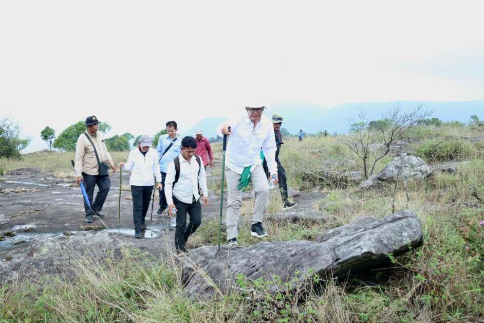 រដ្ឋមន្ត្រីក្រសួងបរិស្ថាន, រដ្ឋមន្ត្រីក្រសួងទេសចរណ៍ និងអភិបាលខេត្តកំពង់ស្ពឺ ចុះពិនិត្យដោយផ្ទាល់លើតំបន់ខ្នងភ្នំខ្នងផ្សារ ក្នុងជួរឧទ្យានជាតិភ្នំក្រវាញ ដើម្បីពិនិត្យទៅលើផែនការជំរុញគោលដៅលំហែបៃតង