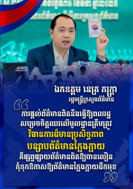 រដ្ឋមន្ត្រីក្រសួងព័ត៌មាន៖ (D7) មិនបង្កើតព័ត៌មានក្លែងក្លាយ មិនផ្សព្វផ្សាយ និងមិនចែករំលែកព័ត៌មានក្លែងក្លាយ! ការផ្តល់ព័ត៌មានពិតនឹងធ្វើឱ្យប្រជាពលរដ្ឋមានមូលដ្ឋានសម្រេចចិត្តត្រឹមត្រូវ។