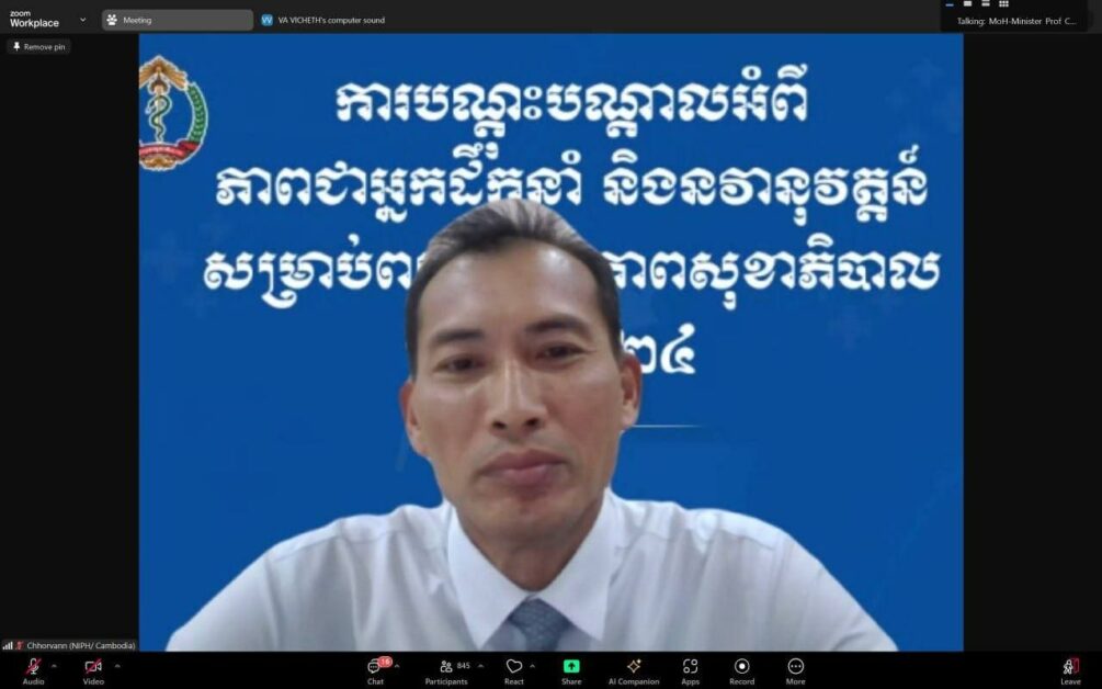 ឯកឧត្តមសាស្ត្រាចារ្យ ឈាង រ៉ា រដ្ឋមន្ត្រីក្រសួងសុខាភិបាល បានធ្វើបាថកឋាស្តីពីការបង្កើតកិច្ចសហការណ៍ (Collaboration) នៅក្នុងការដឹកនាំវិស័យសុខាភិបាល ខាងលើនេះជូនដល់អ្នកដឹកនាំគ្រប់ឋានានុក្រមក្រោមឱវាទក្រសួងសុខាភិបាល តាមប្រព័ន្ធវីដេអូសន្និសីទដែលមានសមាសភាពចូលរួមសរុបចំនួនជាង ៣៥០០ នាក់ កាលពីរសៀល ថ្ងៃទី១៩ ខែវិច្ឆិកា ឆ្នាំ២០២៤មុននេះ។