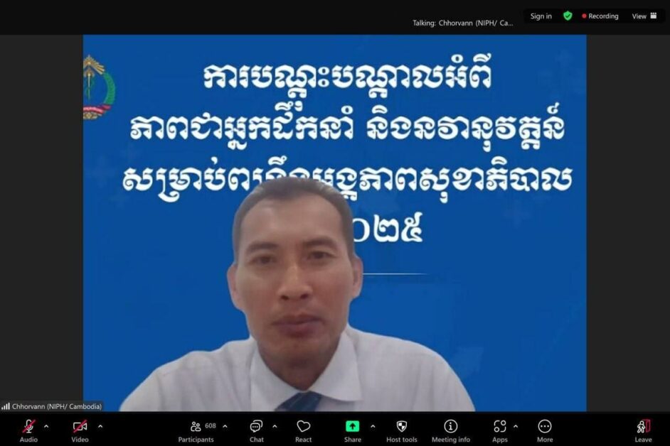 ឯកឧត្តមសាស្ត្រាចារ្យ ឈាង រ៉ា រដ្ឋមន្ត្រីក្រសួងសុខាភិបាល នារសៀលថ្ងៃទី៨ ខែកក្កដា ឆ្នាំ២០២៥ ចែករំលែកបទពិសោធន៍នៃភាពជាអ្នកដឹកនាំ និងនវានុវត្តន៍ ជូនថ្នាក់ដឹកនាំ និងមន្រ្តីសុខាភិបាលគ្រប់ឋានានុក្រម ក្រោមឱវាទក្រសួងសុខាភិបាល តាមប្រព័ន្ធវីដេអូសន្និសីទ (Zoom) ដែលមានសមាសភាពចូលរួមសរុបចំនួន ៣ ៩០៤នាក់។