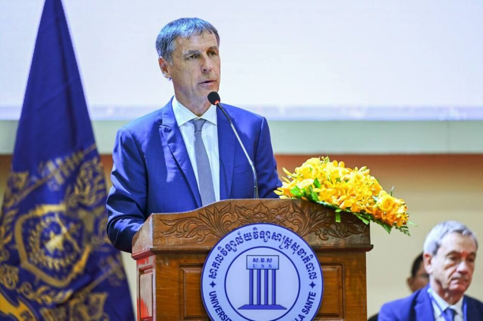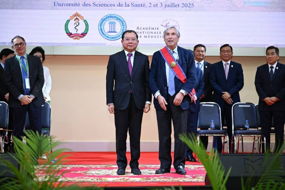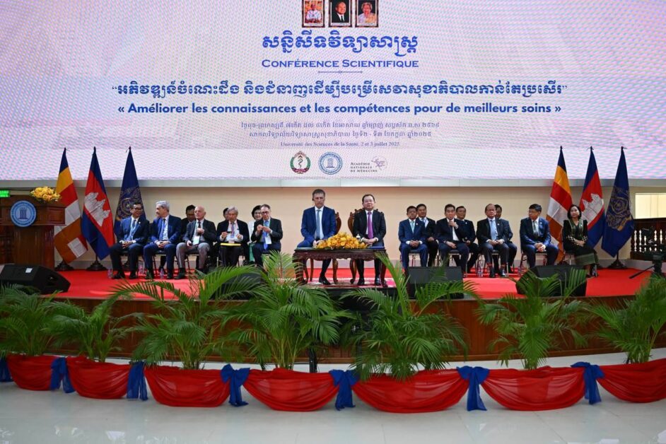 រាជធានីភ្នំពេញ៖ នៅសាកលវិទ្យាល័យវិទ្យាសាស្ត្រសុខាភិបាល ព្រឹកថ្ងៃទី២ ខែកក្កដា ឆ្នាំ២០២៥ ឯកឧត្តមសាស្រ្តាចារ្យ ឈាង រ៉ា រដ្ឋមន្រ្តីក្រសួងសុខាភិបាល និងឯកឧត្តម Jaques Pellet ឯកអគ្គរដ្ឋទូតវិសាមញ្ញ និងពេញសមត្ថភាព នៃសាធារណរដ្ឋបារាំង ប្រចាំព្រះរាជាណាចក្រកម្ពុជា បានអញ្ជើញជាអធិបតីក្នុងសន្និសីទវិទ្យាសាស្រ្តប្រចំាឆ្នាំស្តីពី «អភិវឌ្ឍន៍ចំណេះដឹង និងជំនាញ ដើម្បីបម្រើសេវាសុខាភិបាល កាន់តែប្រសើរ»សន្និសីទនេះរៀបចំឡើងដោយ សាកលវិទ្យាល័យវិទ្យាសាស្ត្រសុខាភិបាល សហការជាមួយបណ្ឌិត្យសភាជាតិវេជ្ជសាស្ត្របារាំង ហើយនិងក្រសួង-ស្ថាប័នពាក់ព័ន្ធ មន្រ្តី-បុគ្គលិក និងនិស្សិតនៃស.វ.ស និងតាមប្រព័ន្ធនិម្មិត Zoom សរុបជិត ១,០០០នាក់។