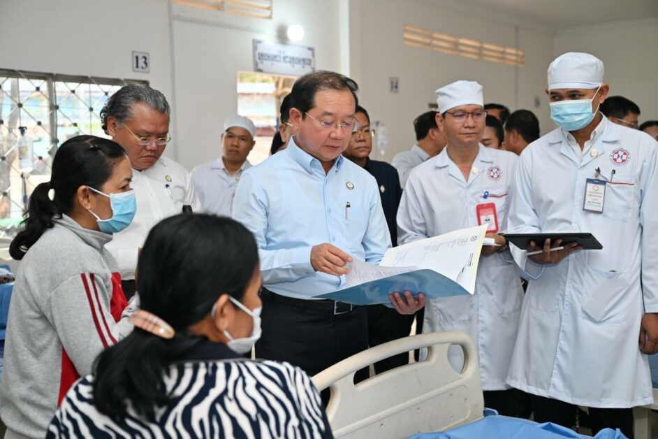 បាត់ដំបង៖ នាព្រឹកថ្ងៃសុក្រ ទី២៧ ខែកុម្ភៈ ឆ្នាំ២០២៦ ឯកឧត្តមសាស្ត្រាចារ្យ ឈាង រ៉ា រដ្ឋមន្ត្រីក្រសួងសុខាភិបាល និងថ្នាក់ដឹកនាំក្រសួងសុខាភិបាល បានអញ្ជើញចុះសំណេះសំណាល សួរសុខទុក្ខ និងពិនិត្យការបម្រើសេវាសុខាភិបាល នៅក្នុងមន្ទីរពេទ្យបង្អែកបវេល ខេត្តបាត់ដំបង។