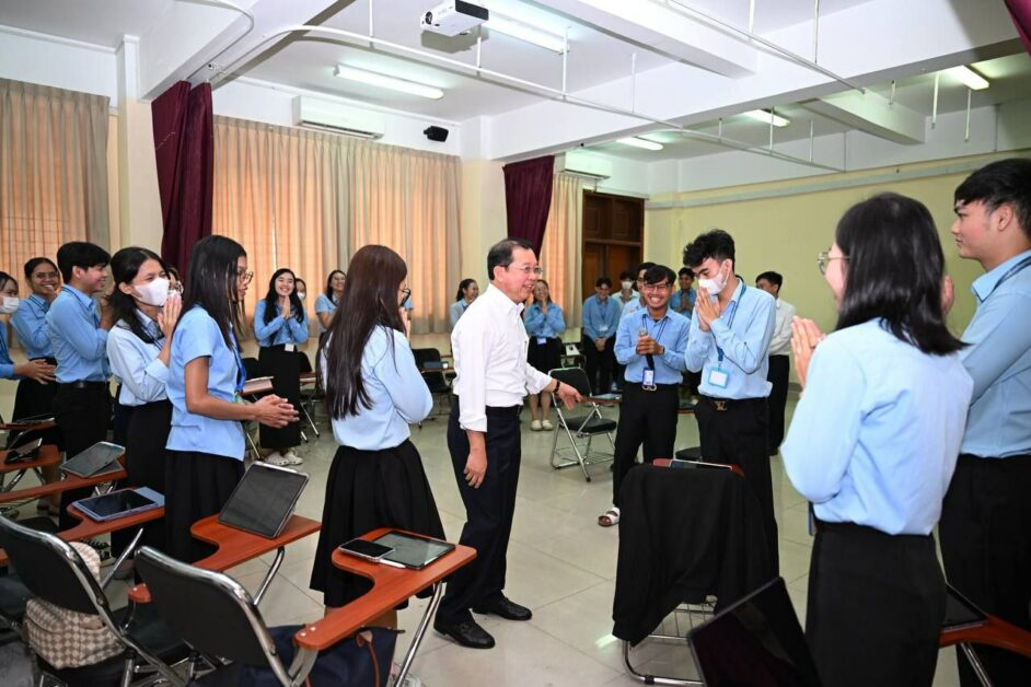 ក្នុងឱកាសនោះដែរ ឯកឧត្តមសាស្រ្តាចារ្យរដ្ឋមន្រ្តី បានចុះពិនិត្យដោយផ្ទាល់នៅក្នុងថ្នាក់រៀន ទាំងការបង្រៀនរបស់សាស្រ្តាចារ្យ និងនិស្សិត។ ឯកឧត្តមសាស្រ្តាចារ្យ បានចែករំលែកវិធីសាស្រ្តគន្លឹះដល់ក្មួយនិស្សិត ក្នុងការសិក្សារៀនសូត្រ ត្រូវមានភាពរវៀសរវៃ រហ័ស ឆន្ទៈរៀនសូត្រ ប្រើពេលវេលាសិក្សាឱ្យបានត្រឹមត្រូវ និងឱ្យអស់ពីលទ្ធភាព ទាំងការស្តាប់ និងការកត់ត្រា ព្រមទាំងត្រូវមានភាពក្លាហានលើកជាសំណួរឱ្យបានច្រើន ដល់គ្រូបង្រៀន។ ឯកឧត្តមសាស្រ្តាចារ្យ បានបន្ថែមថា ការសិក្សាមិនចេះចប់នោះទេ ទាំងពេលការសិក្សា រហូតដល់ពេលបំពេញការងារ ក៏ត្រូវបន្តសិក្សាជាប្រចាំ ដើម្បីបន្តពង្រឹងសមត្ថភាព ការធ្វើនវានុវត្តន៍ស្របតាមសម័យកាល និងស្វែងយល់នូវវិធីសាស្រ្តថ្មីៗបន្ថែមទៀត។ ពេលក្មួយបញ្ចប់ការសិក្សា ត្រូវប្រកាន់ភ្ជាប់នូវក្រមសីលធម៌វិជ្ជាជីវៈខ្ពស់ ដែលជាក្តីសង្ឃឹមរបស់អ្នកជំងឺ។