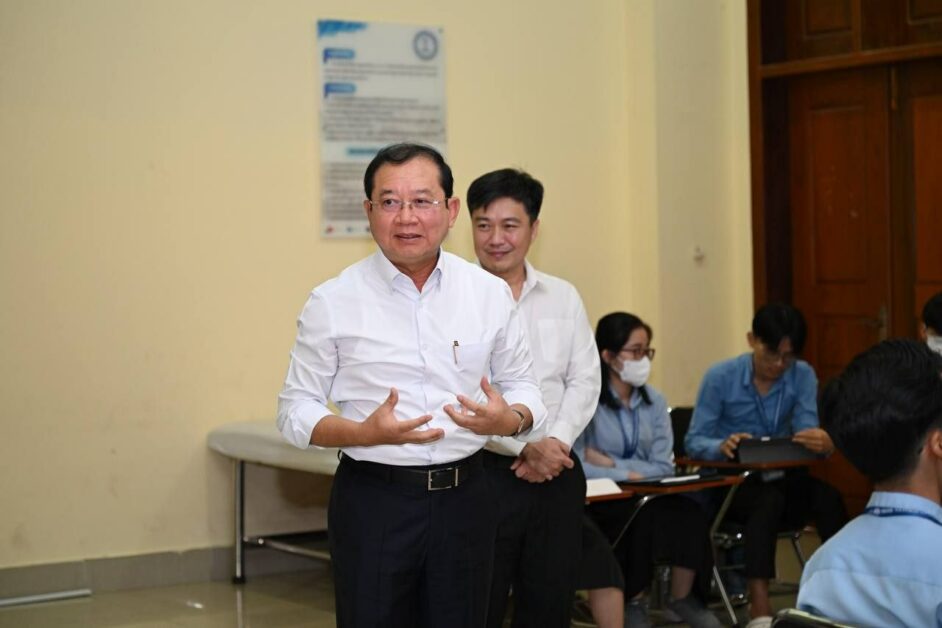 ក្នុងឱកាសនោះដែរ ឯកឧត្តមសាស្រ្តាចារ្យរដ្ឋមន្រ្តី បានចុះពិនិត្យដោយផ្ទាល់នៅក្នុងថ្នាក់រៀន ទាំងការបង្រៀនរបស់សាស្រ្តាចារ្យ និងនិស្សិត។ ឯកឧត្តមសាស្រ្តាចារ្យ បានចែករំលែកវិធីសាស្រ្តគន្លឹះដល់ក្មួយនិស្សិត ក្នុងការសិក្សារៀនសូត្រ ត្រូវមានភាពរវៀសរវៃ រហ័ស ឆន្ទៈរៀនសូត្រ ប្រើពេលវេលាសិក្សាឱ្យបានត្រឹមត្រូវ និងឱ្យអស់ពីលទ្ធភាព ទាំងការស្តាប់ និងការកត់ត្រា ព្រមទាំងត្រូវមានភាពក្លាហានលើកជាសំណួរឱ្យបានច្រើន ដល់គ្រូបង្រៀន។ ឯកឧត្តមសាស្រ្តាចារ្យ បានបន្ថែមថា ការសិក្សាមិនចេះចប់នោះទេ ទាំងពេលការសិក្សា រហូតដល់ពេលបំពេញការងារ ក៏ត្រូវបន្តសិក្សាជាប្រចាំ ដើម្បីបន្តពង្រឹងសមត្ថភាព ការធ្វើនវានុវត្តន៍ស្របតាមសម័យកាល និងស្វែងយល់នូវវិធីសាស្រ្តថ្មីៗបន្ថែមទៀត។ ពេលក្មួយបញ្ចប់ការសិក្សា ត្រូវប្រកាន់ភ្ជាប់នូវក្រមសីលធម៌វិជ្ជាជីវៈខ្ពស់ ដែលជាក្តីសង្ឃឹមរបស់អ្នកជំងឺ។